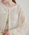 【繊細なレースと異素材ミックスのパッチワークデザインが魅力の華やかなシアーカーディガン】