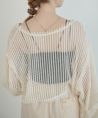 ・表側に縫い目を見せてリメイク感を出した繊細なパッチワーク ・衿ぐりと裾は自然にほつれが出るカットオフデザインに ・生地はそれぞれ透け感があるので夏の羽織にもぴったり ・前あきはホック留め仕様、チュラルな雰囲気を崩さないコットンテープで仕上げました ・ゆるっとしたサイズ感でリラックスな着心地、ショート丈でコーデのバランスが取りやすく羽織るだけでこなれた印象に