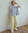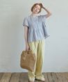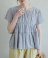 ・ゆるくフィットするシャーリングデザイン ・ウエスト切り替えから広がるぺプラムシルエット ・すっきりとしたUネック、後ろはボタンあき ・長すぎない丈感で身長が低めの方でもコーデのバランスが取りやすいのがポイント ・爽やかなコットン素材のストライプ生地を使用、軽い着心地で夏でも涼しく着られます