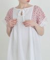・袖フリルデザインでフェミニンな要素をプラス ・サイドに胸下ギャザーでふんわりシルエットに ・切り替え部分のレースがさりげないポイント ・リボンデザインのあきは前後2wayで着用できます ・コットン素材の楊柳生地、さらっとした肌触りで夏でも涼しく着て頂けます