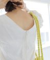 サイドポケット付きで実用性があるのも魅力的。 肘にかかる絶妙な袖丈とふんわりとしたボリュームスリーブで気になる二の腕をカバーしてくれるのも◎ ウエストは一周ゴム仕様でストレスフリーな着心地が叶います。