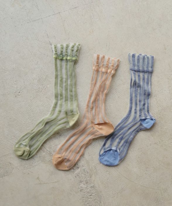 パンプスやスニーカーからちらっと覗かせるのがおすすめです。 ストライプ柄が目を惹き、シンプルなアイテムに合わせるだけでスタイリングのアクセントに。 コーディネートに取り入れるだけでおしゃれ度が上がる優秀アイテムです。