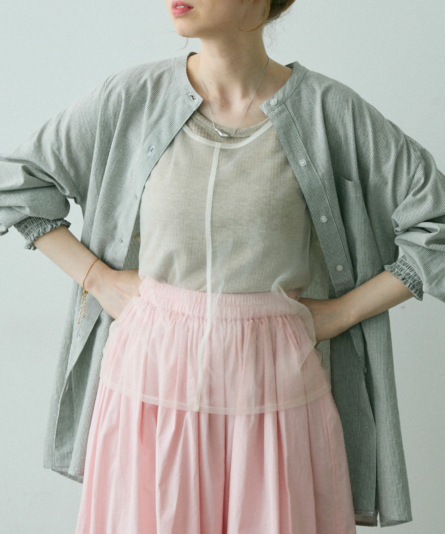 袖シャーリングシアーメロウTシャツ[c1R3580]
