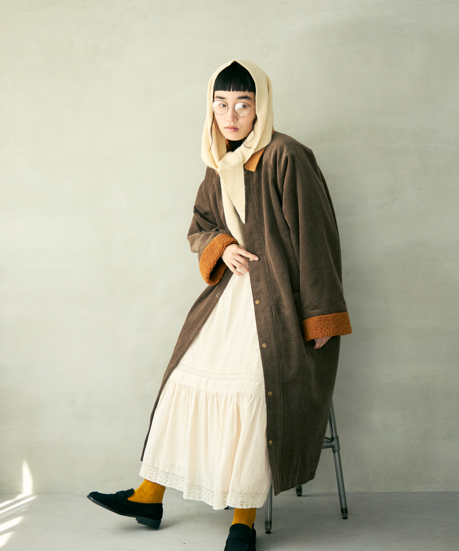 中綿が入っているのでロング丈でもふんわり軽い設計。