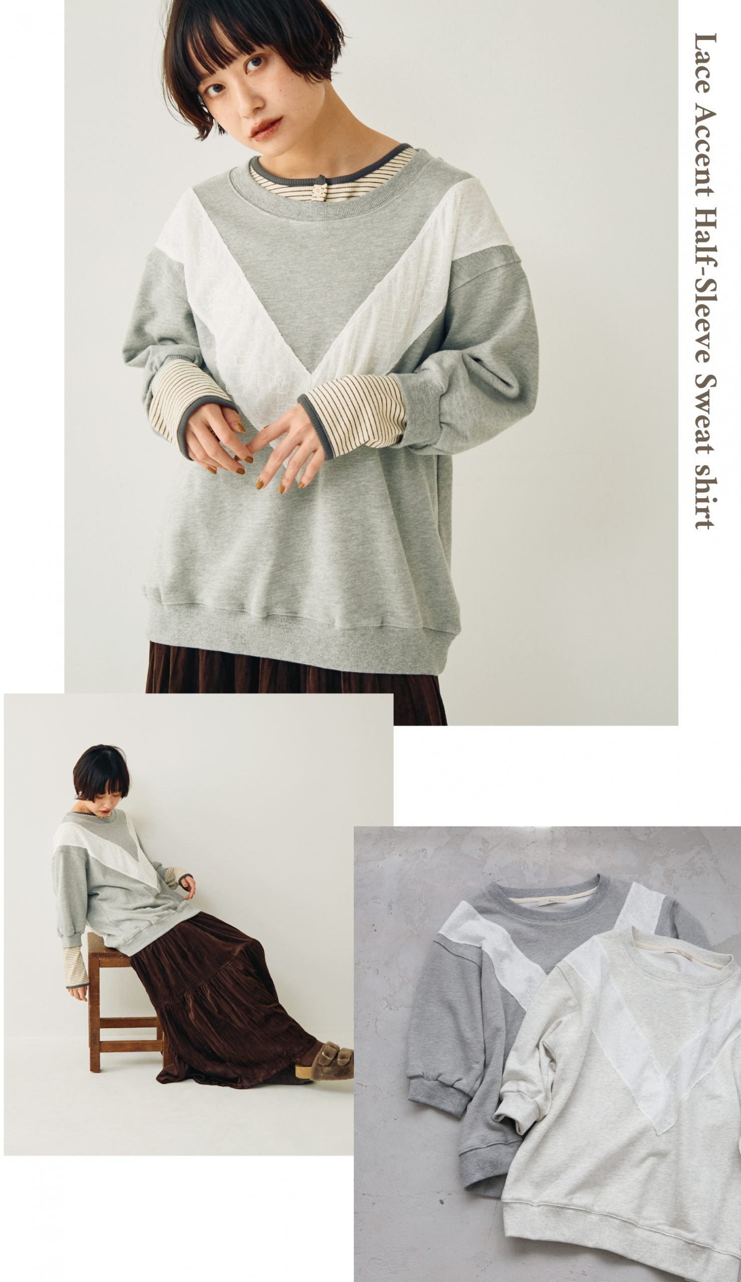 レースアクセントハーフスリーブスウェット