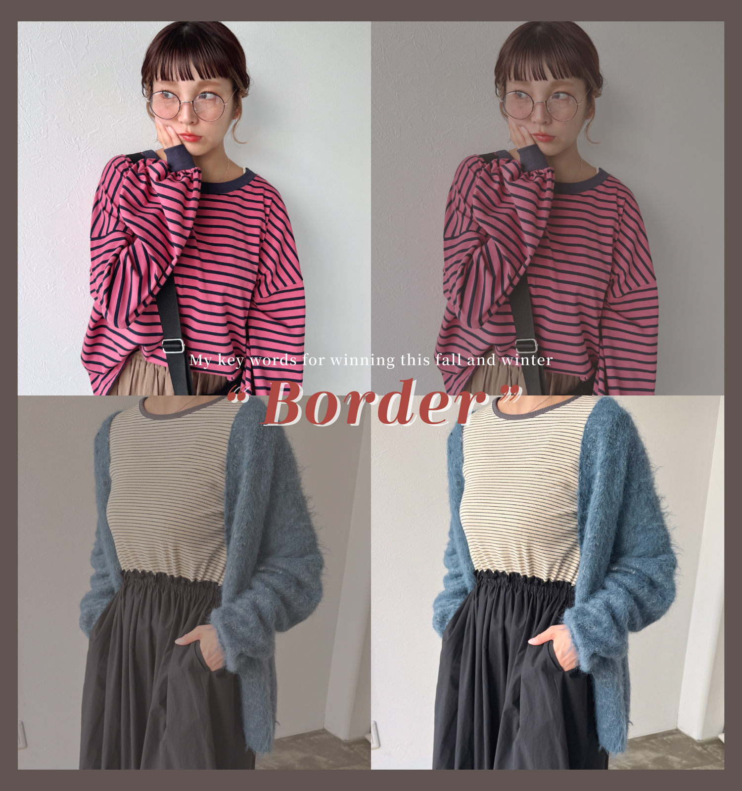 たぽっとしたボリューム袖がポイントのボーダーT。