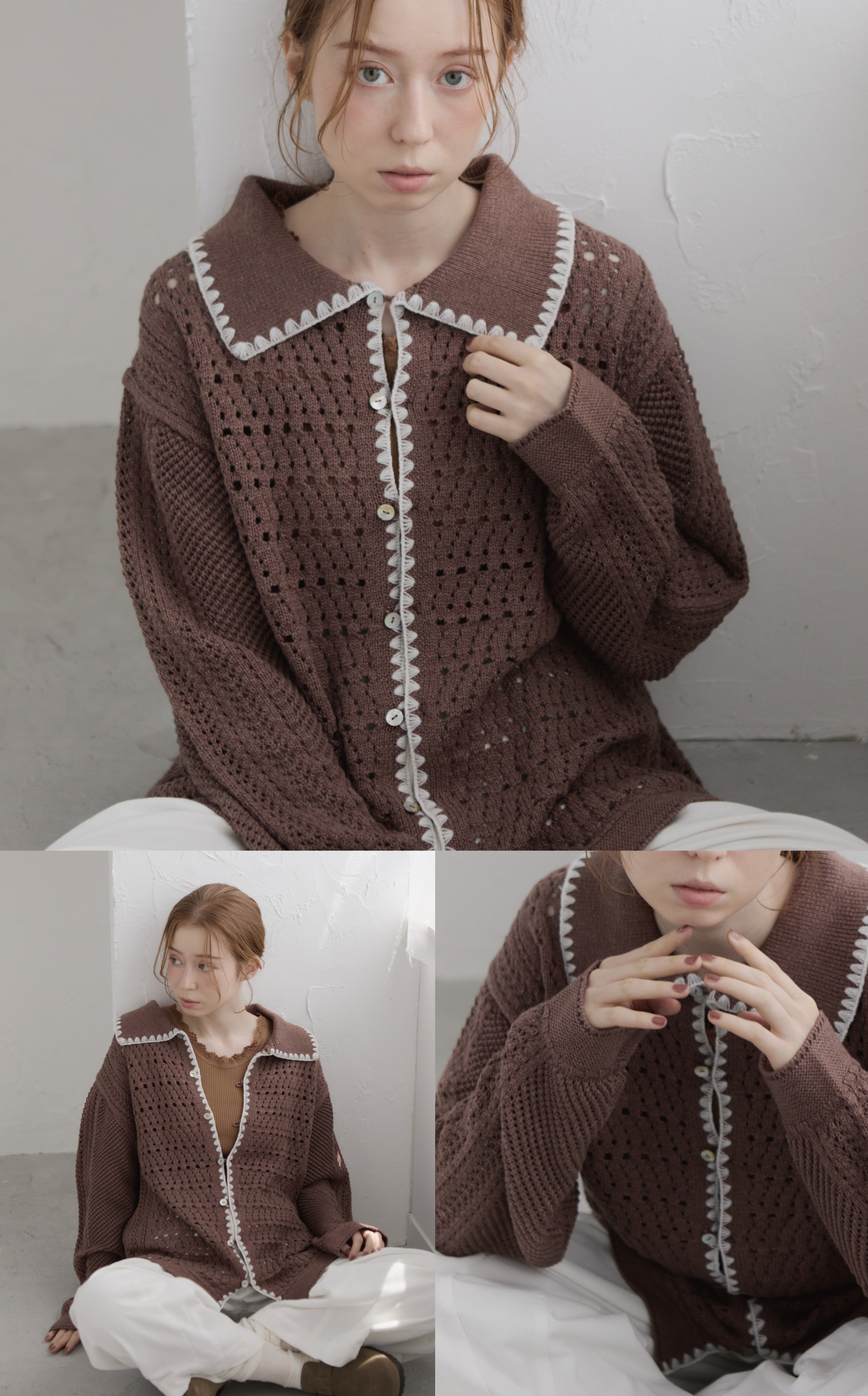 存在感のあるポロカーディガン。