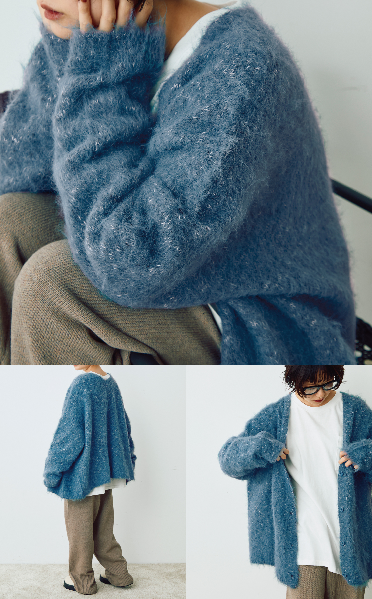 ミックスニットのシャギーカーディガン。