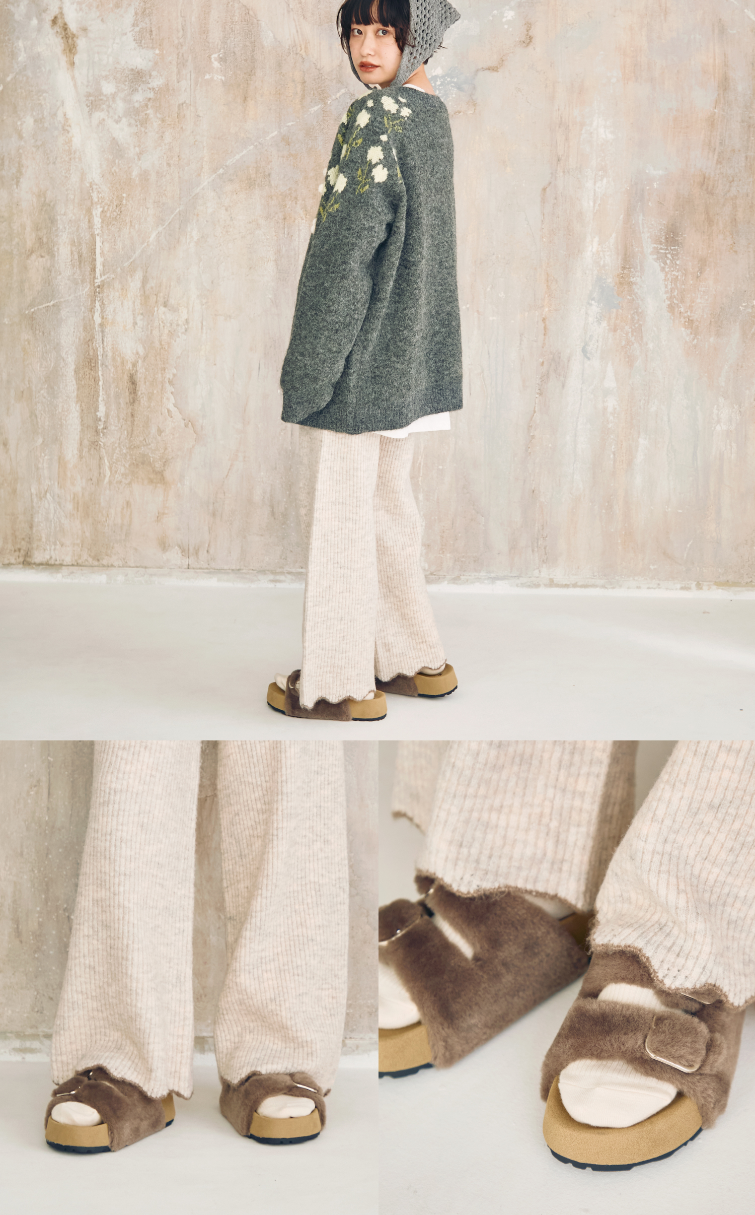 袖口や裾のリブの編み方にもこだわった