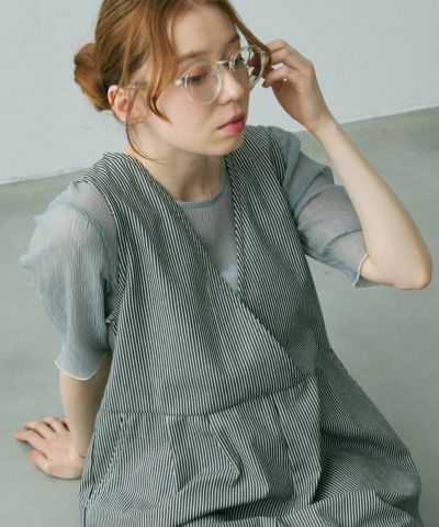 昨年のアイボリーを持っていたので、今年はブルーを購入しました! 透けすぎないちょうど良いシアー感ですが、本当に涼しくて真夏に大活躍しそうです。色もやさしいブルーなので着やすくてとっても可愛いです。