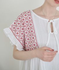 マーガレット刺繍が可愛くてオレンジを購入しました。ショートTシャツなので丈は思ったよりも短く、袖は長めです。