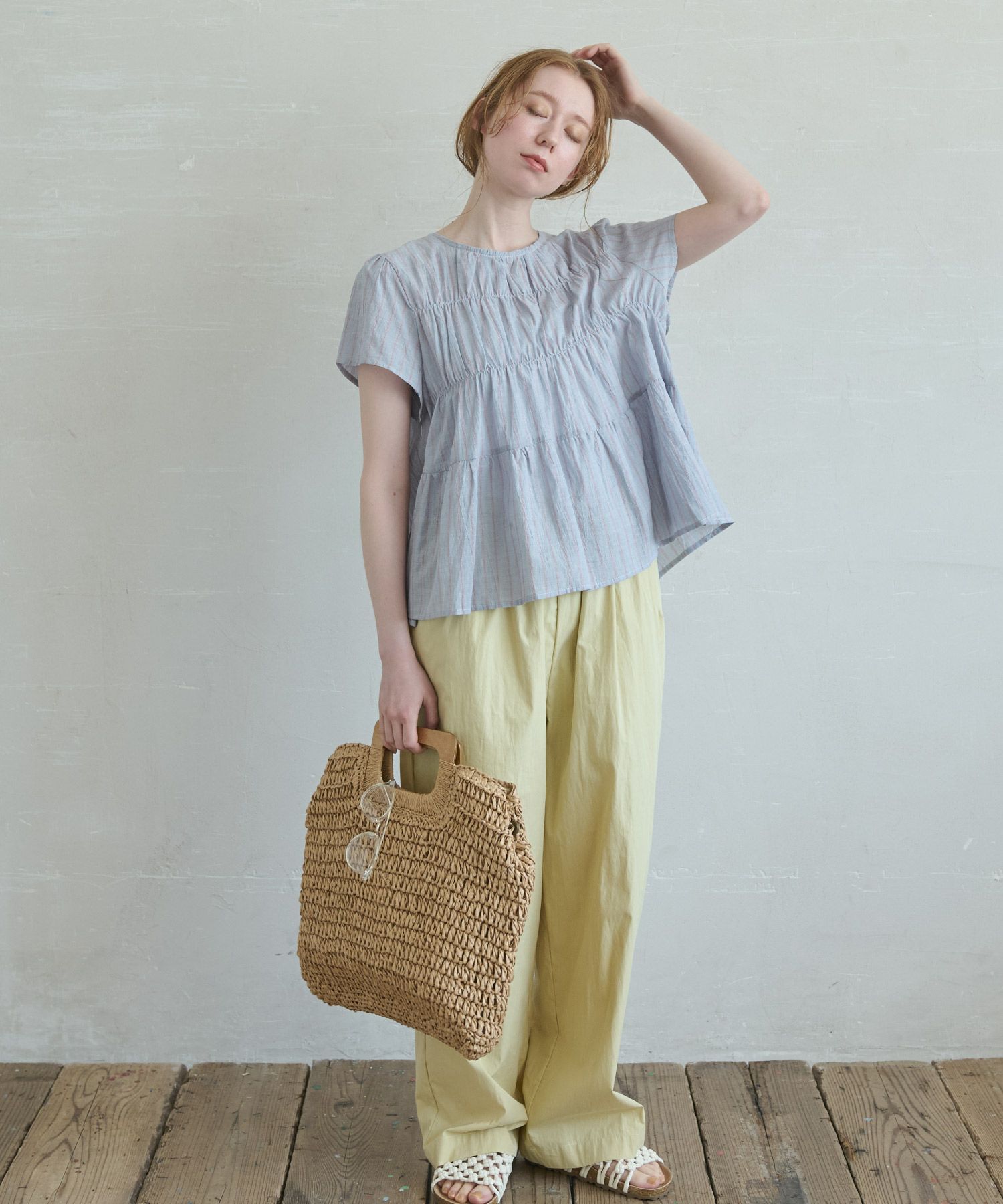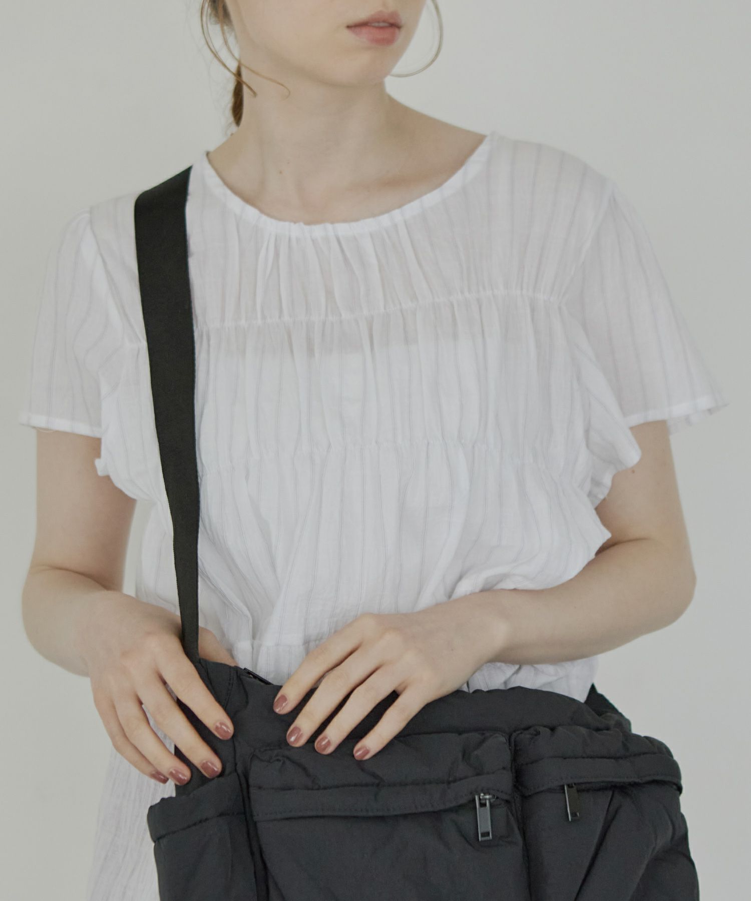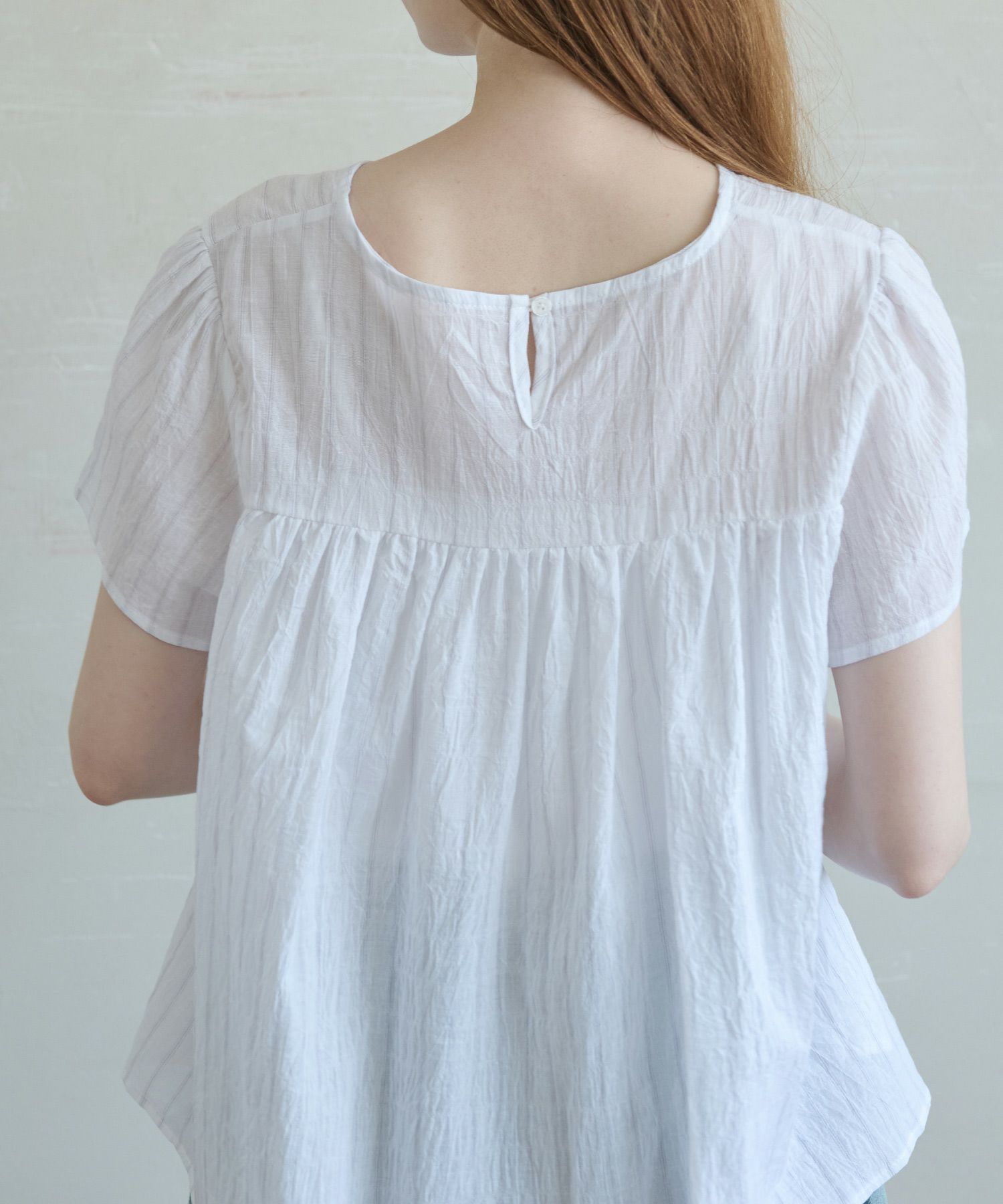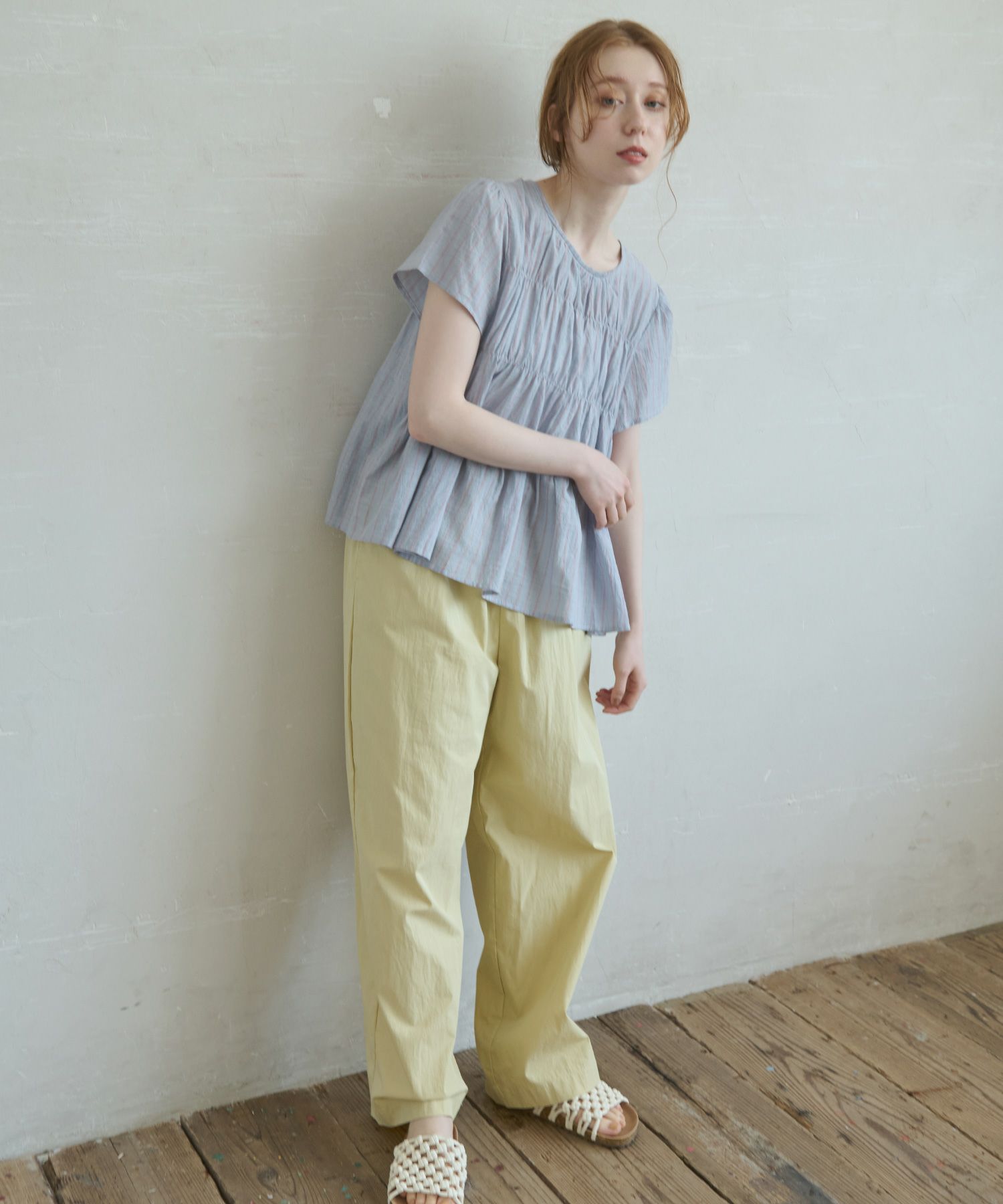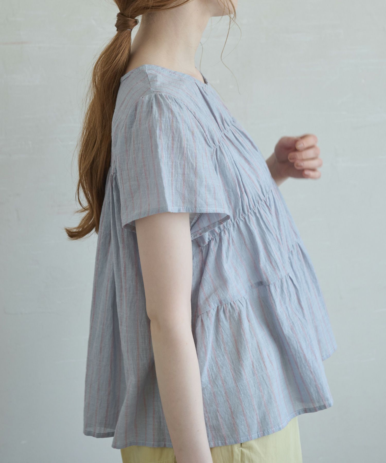 ストライプシャーリングギャザーブラウス[c1k3619b]