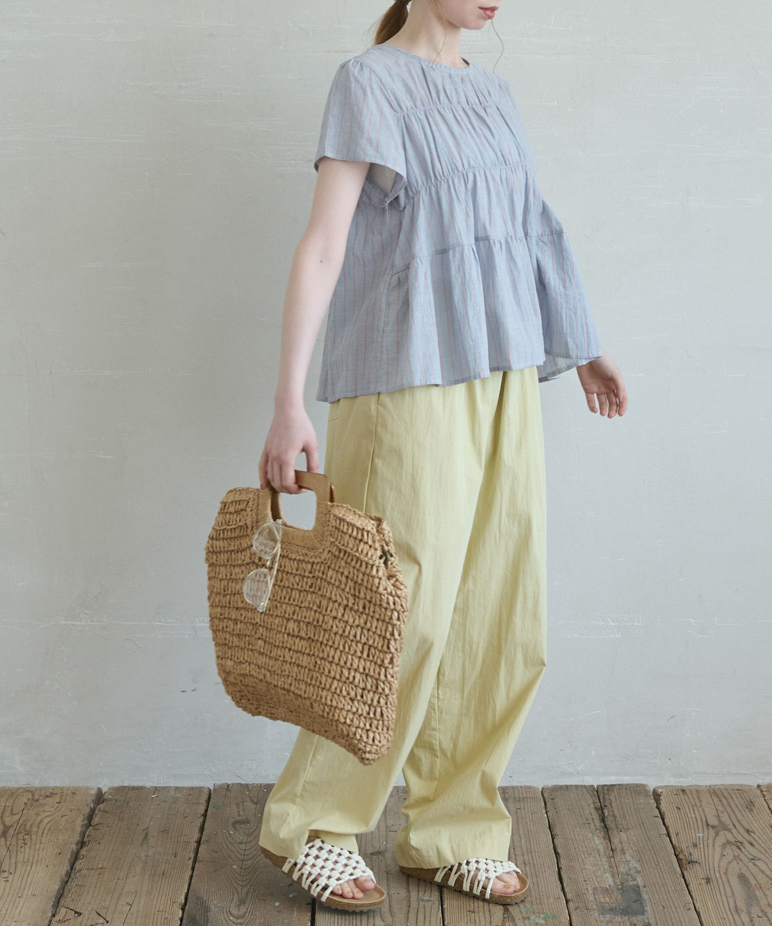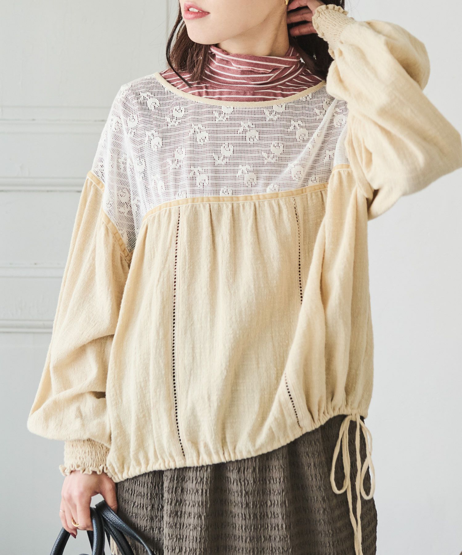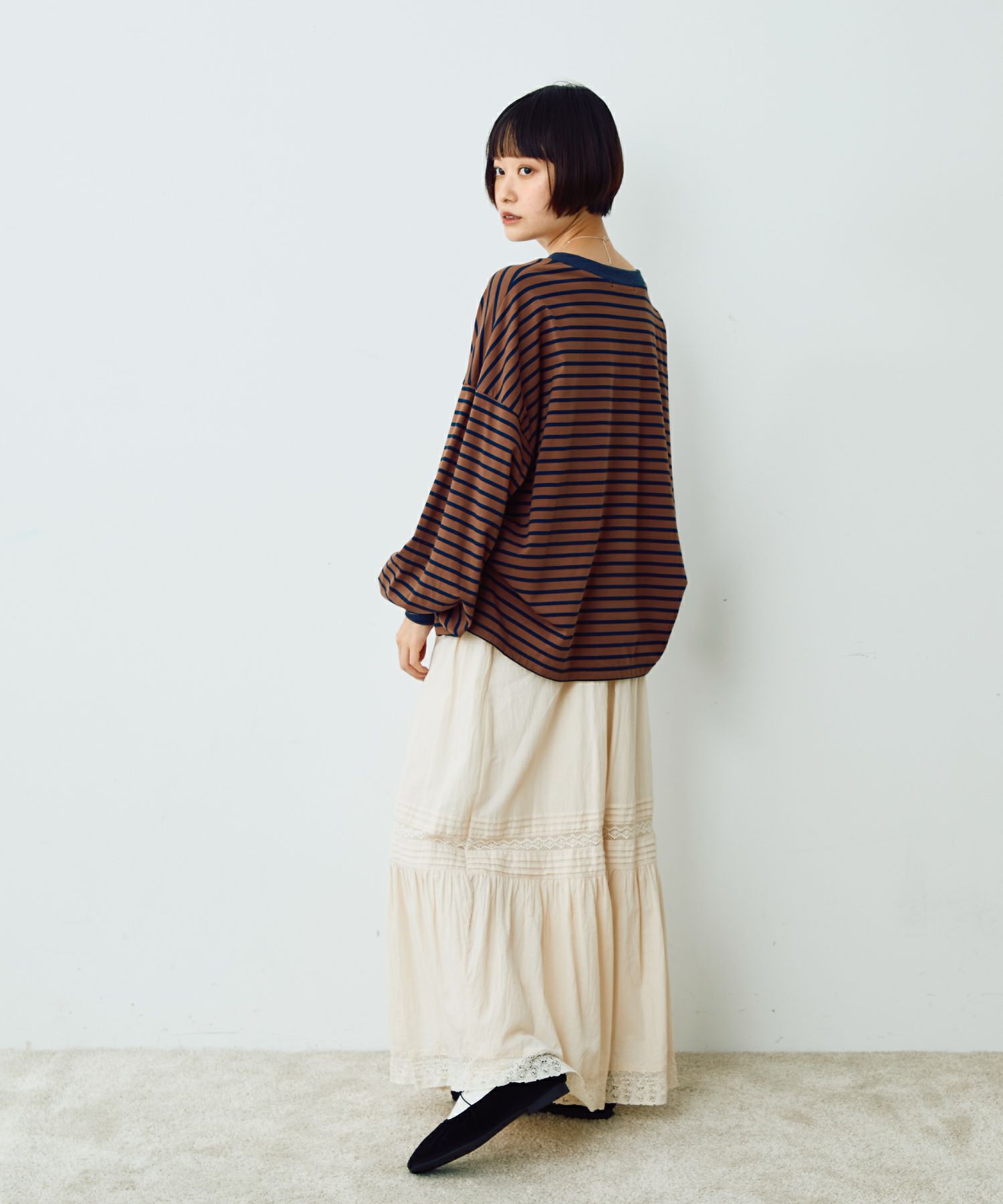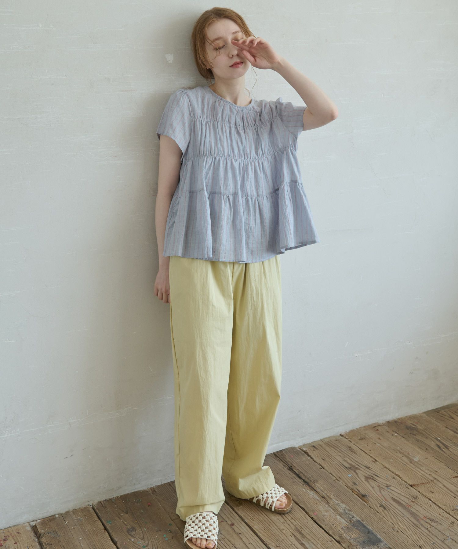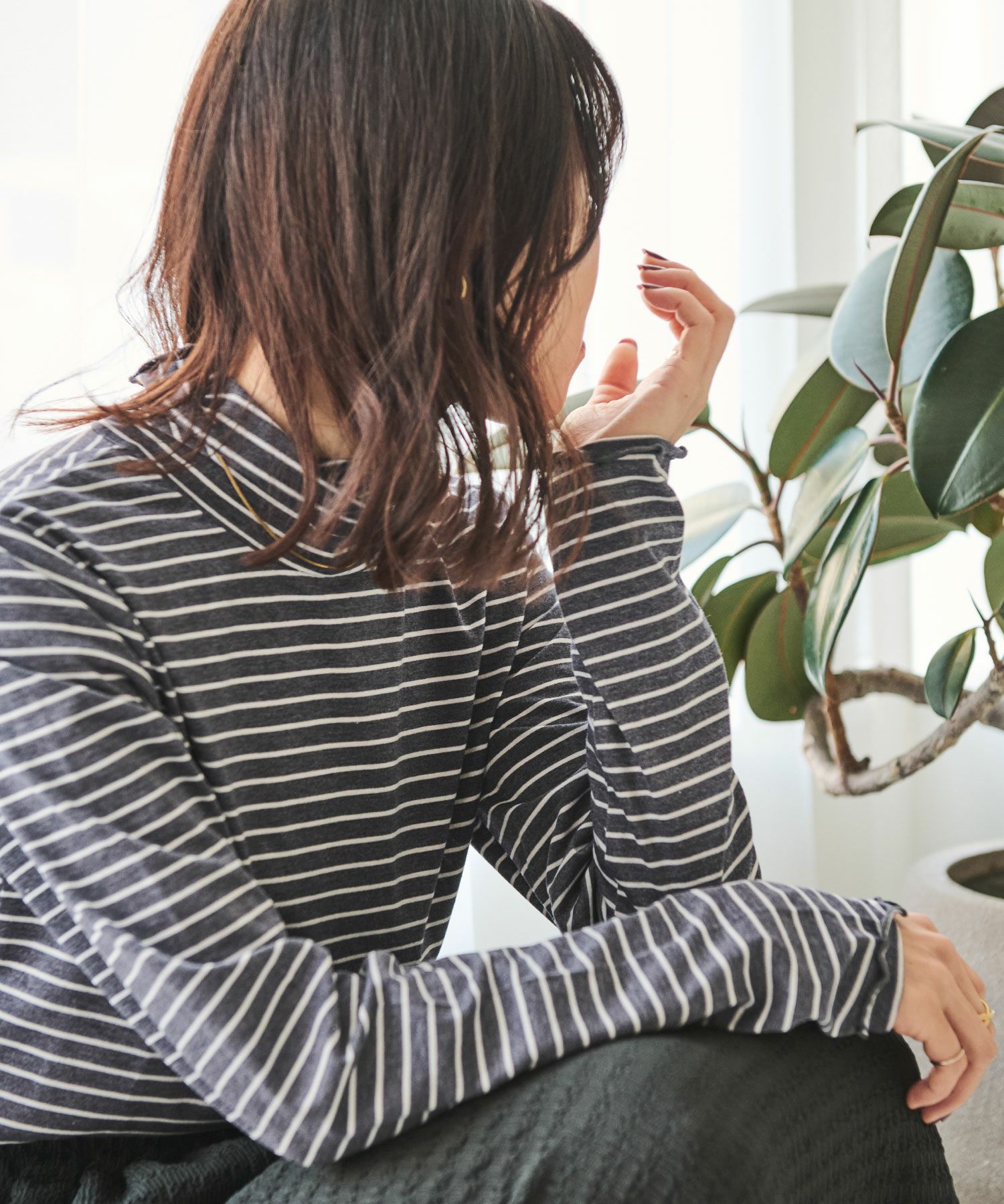 ストライプシャーリングギャザーブラウス[c1k3619b]
