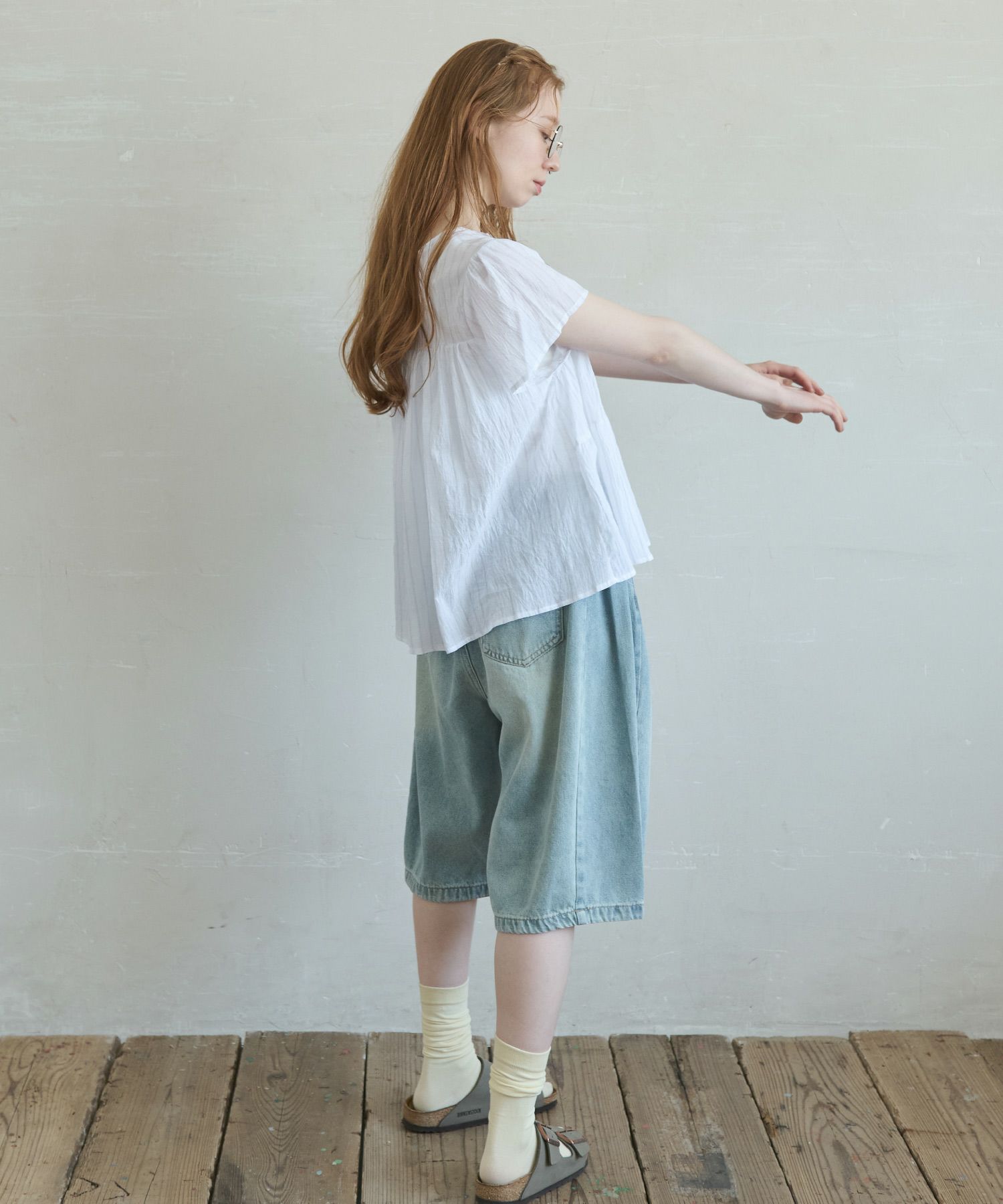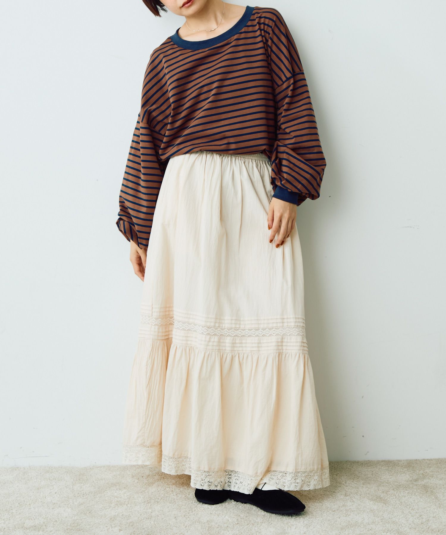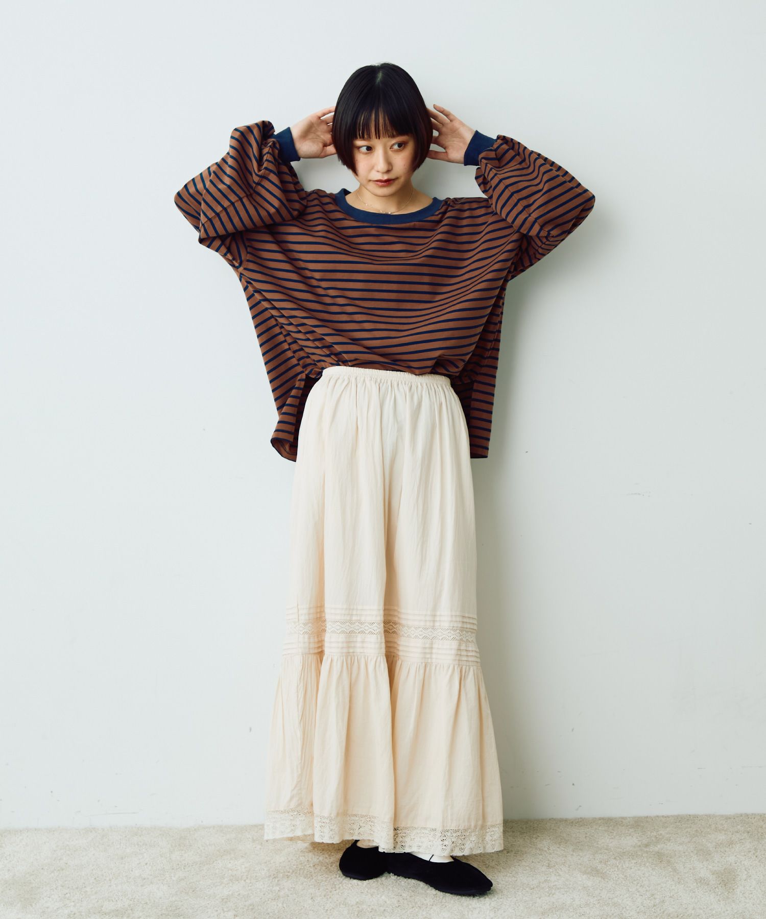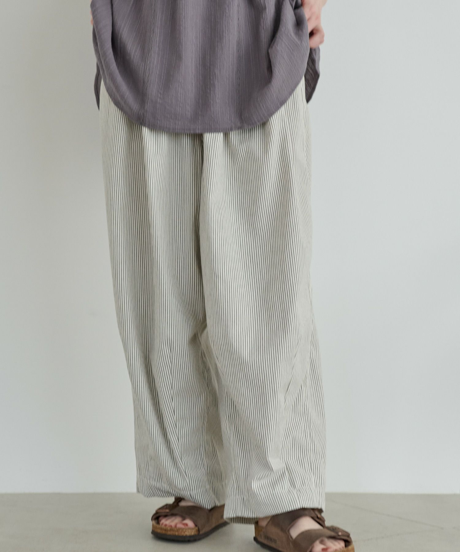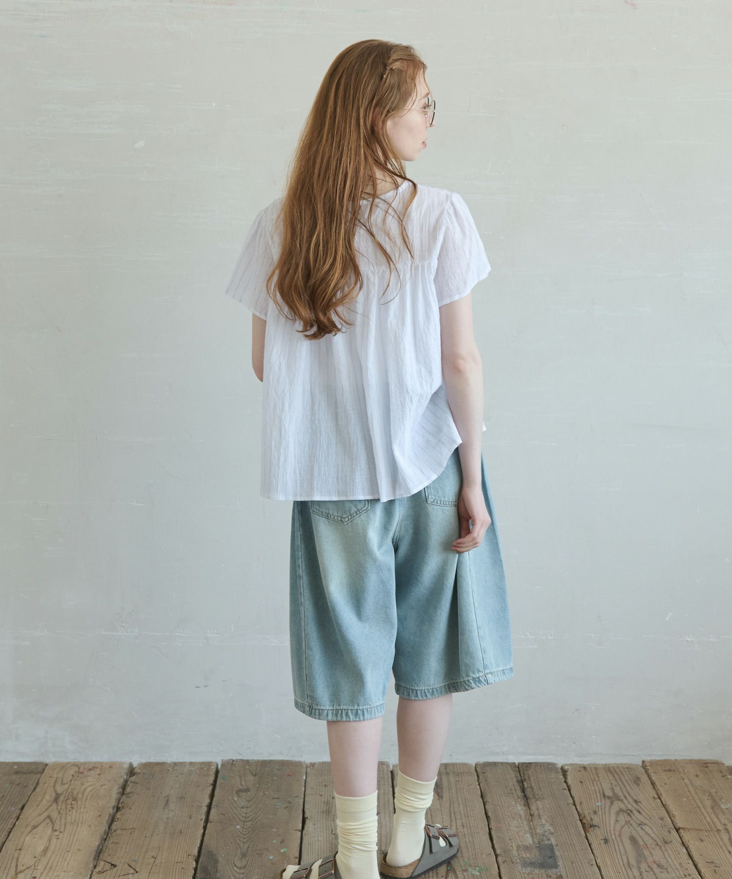ストライプシャーリングギャザーブラウス[c1k3619b]