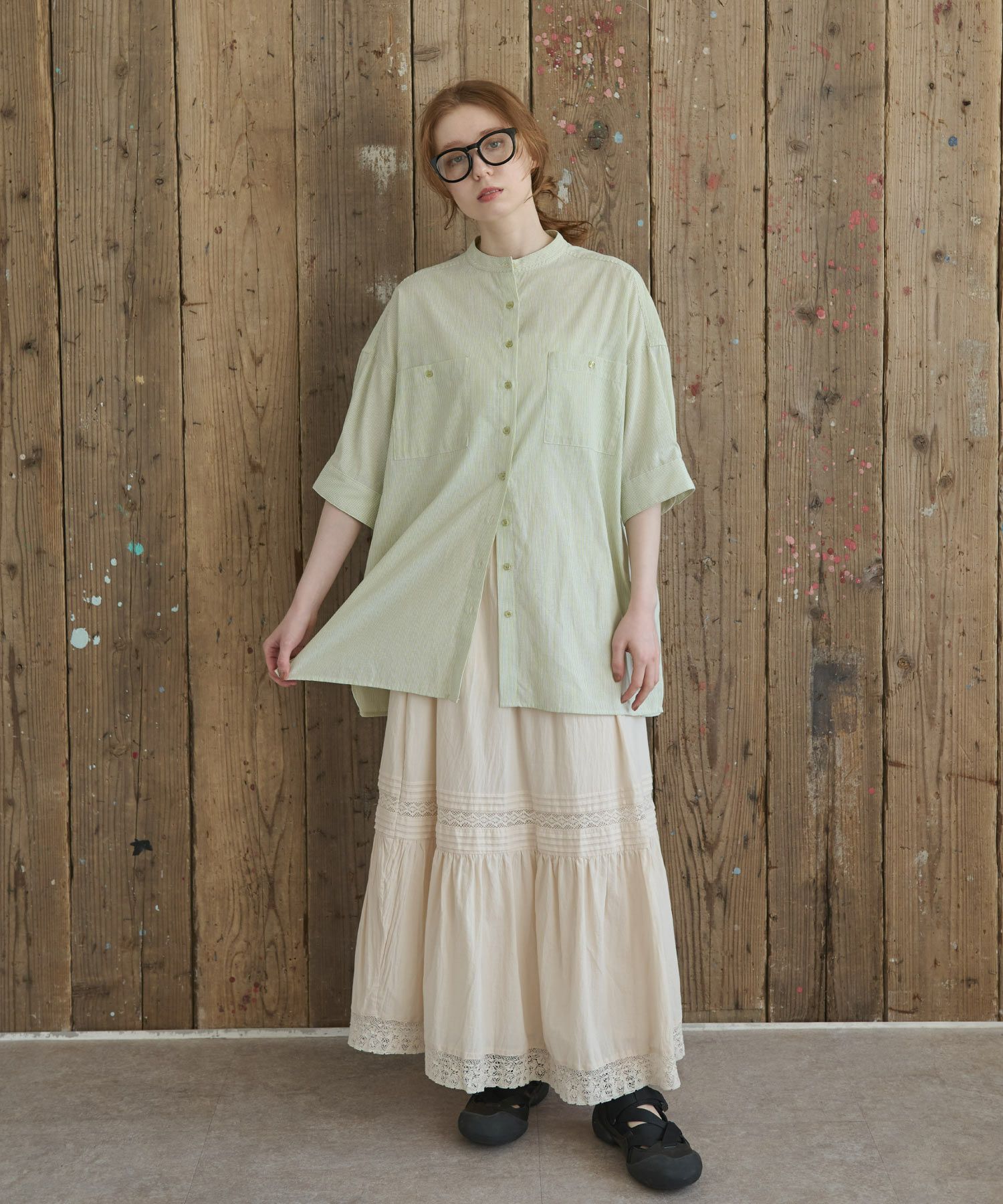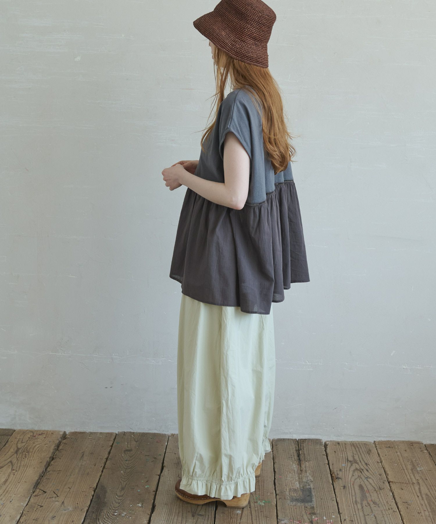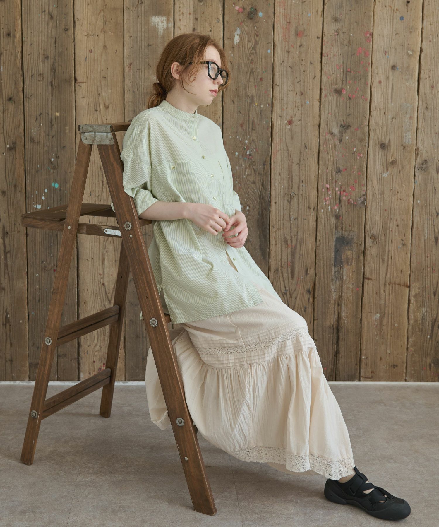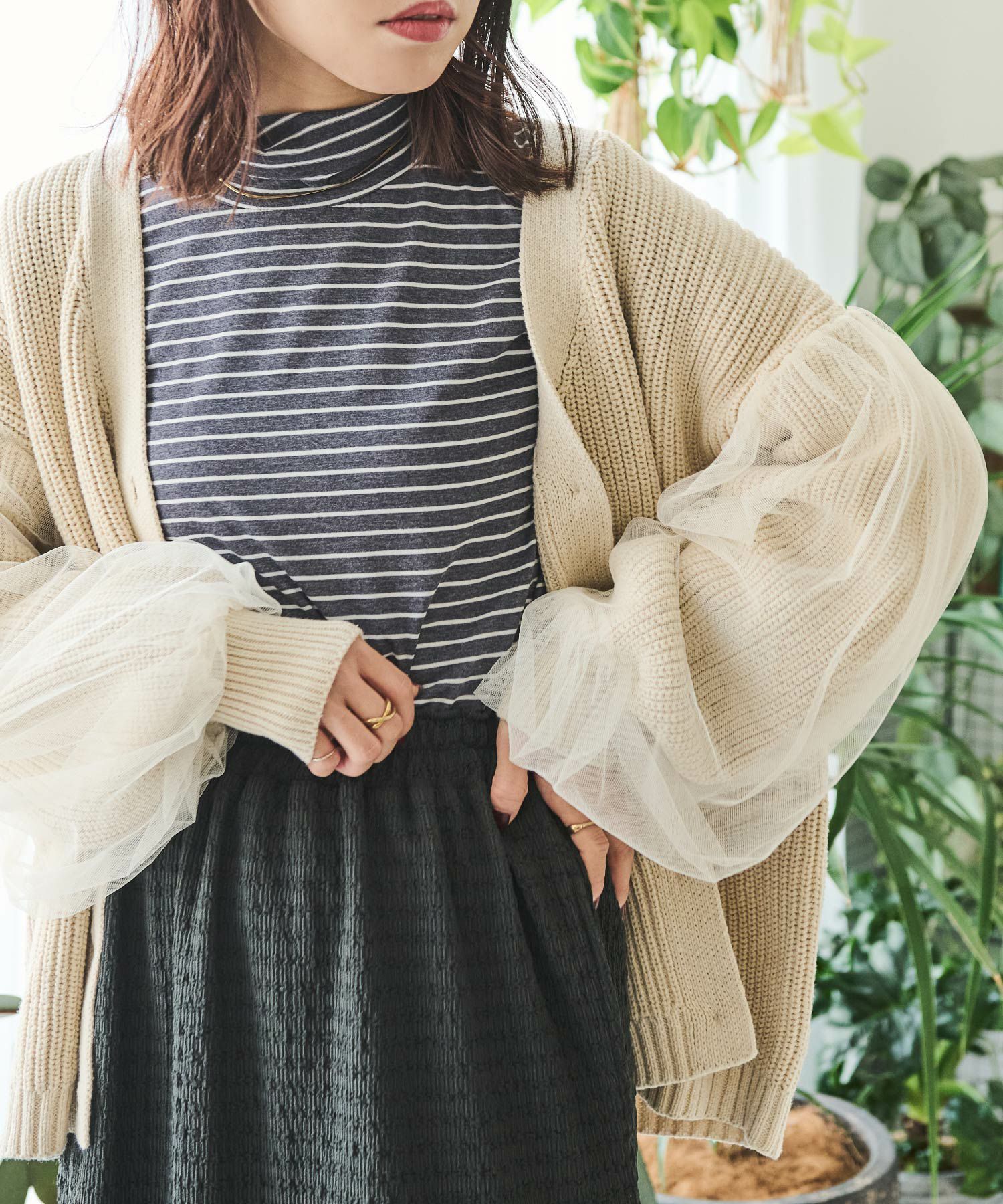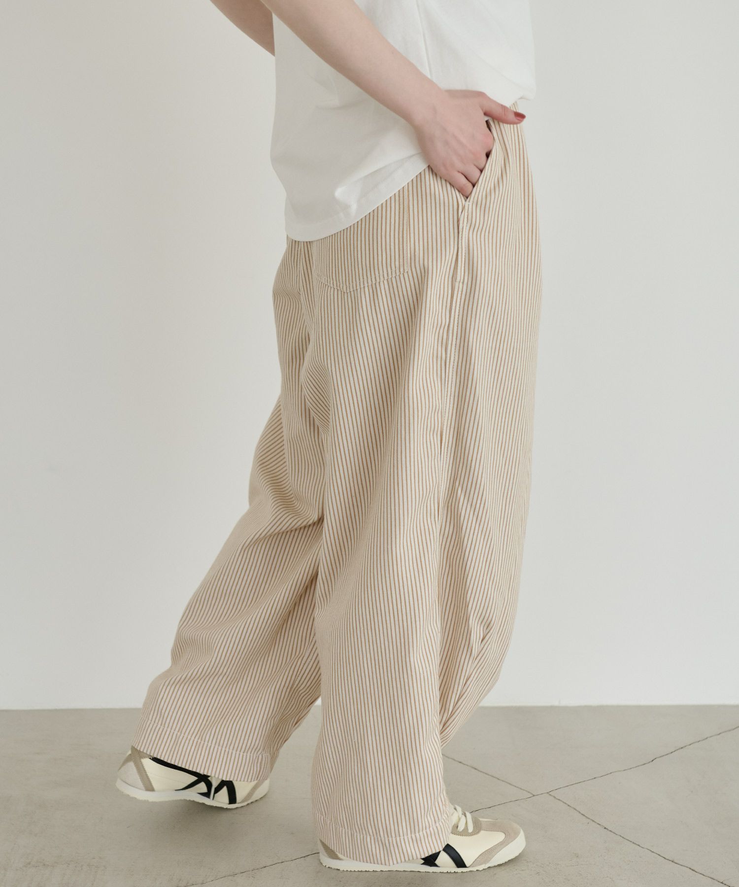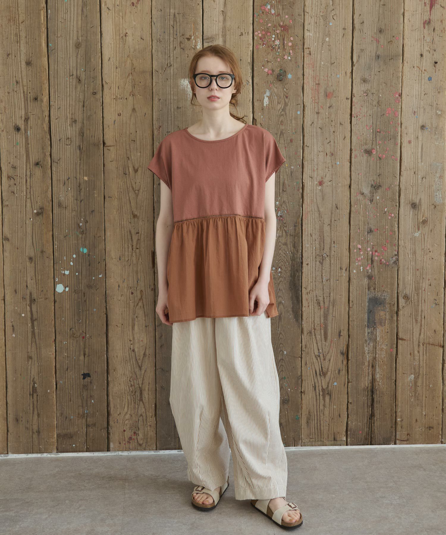 ストライプシャーリングギャザーブラウス[c1k3619b]