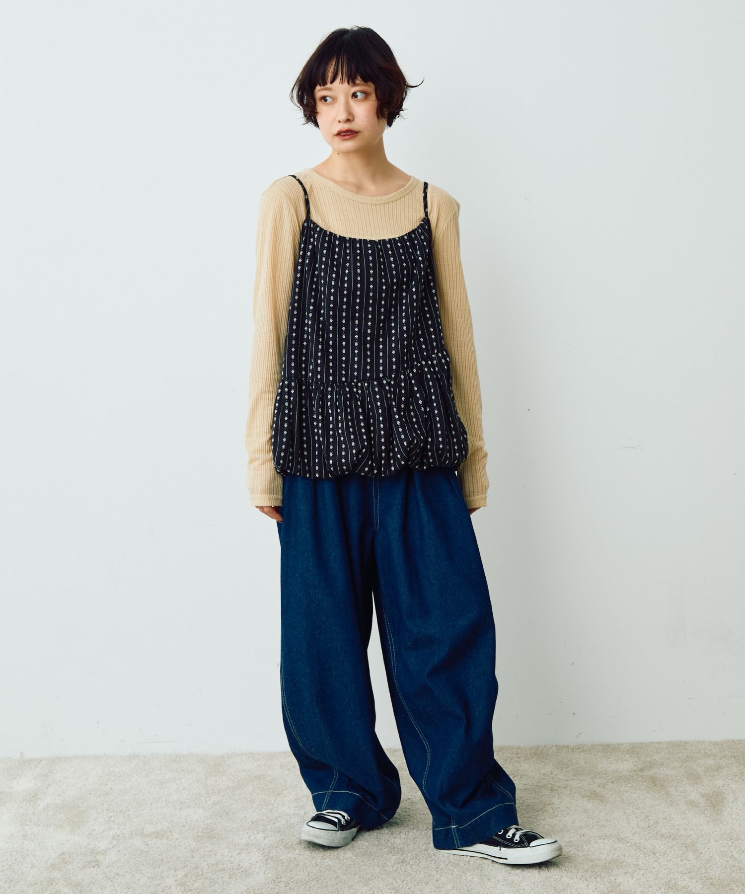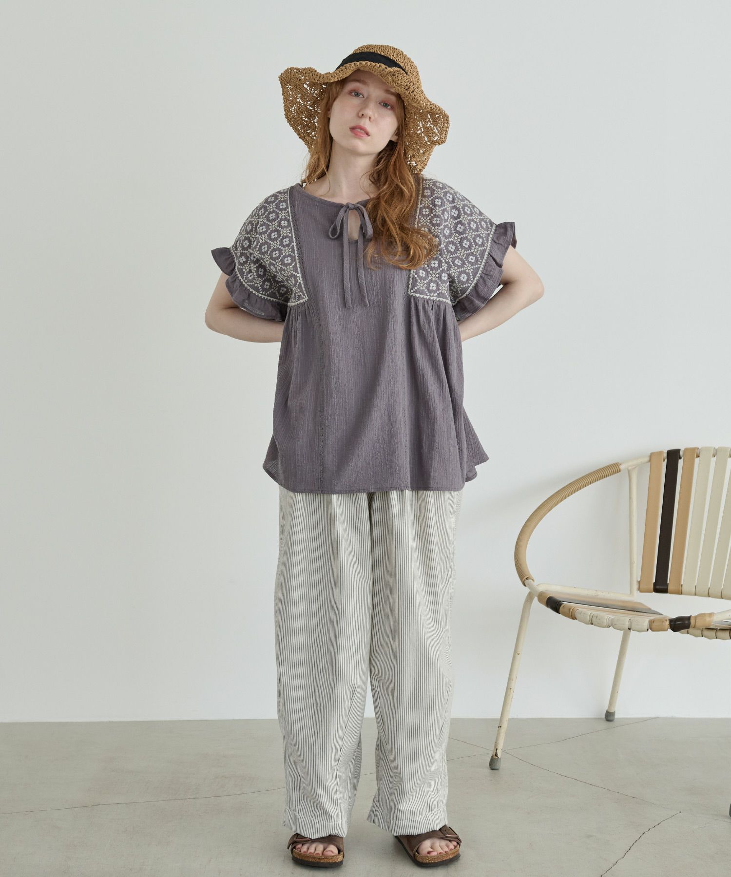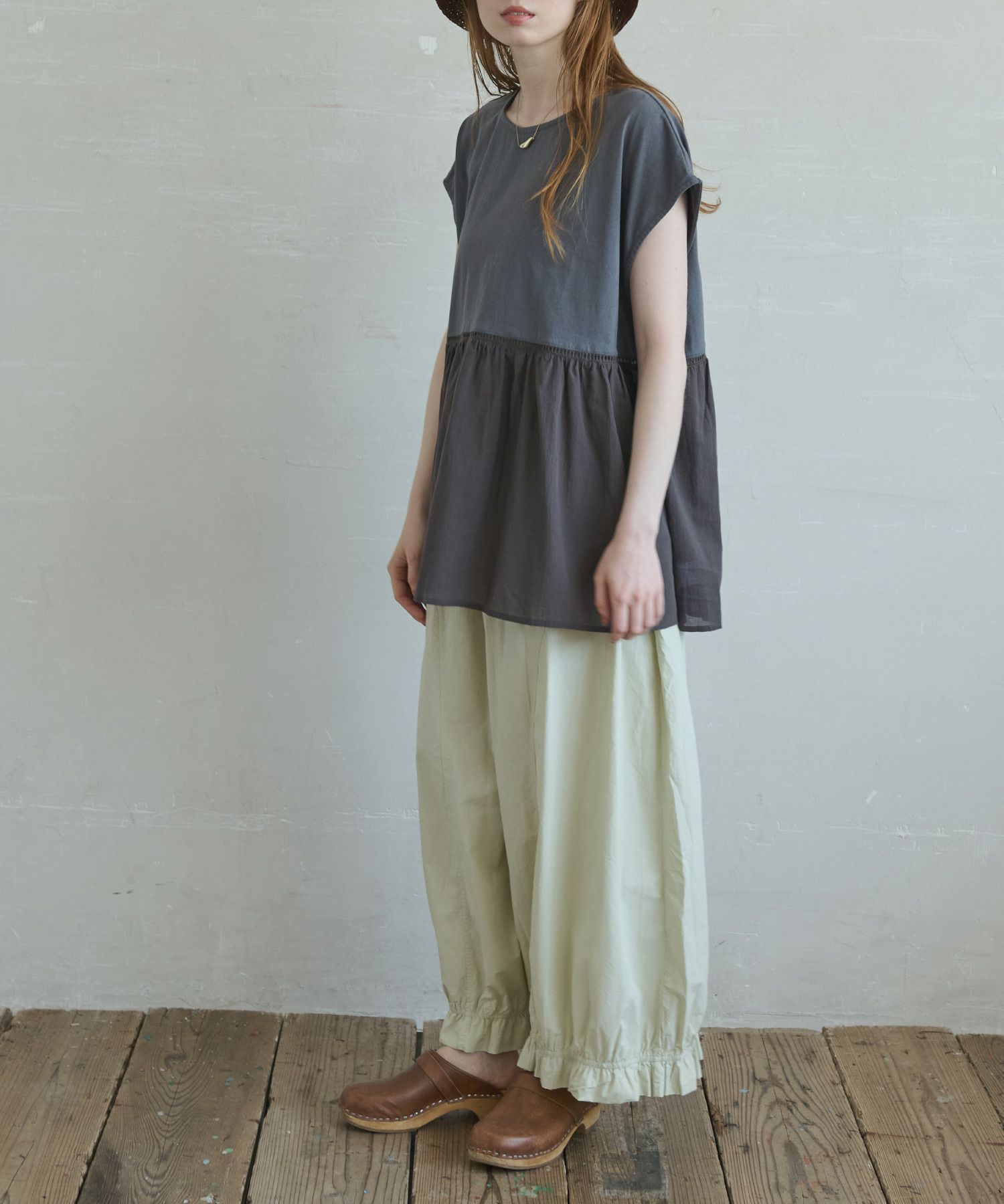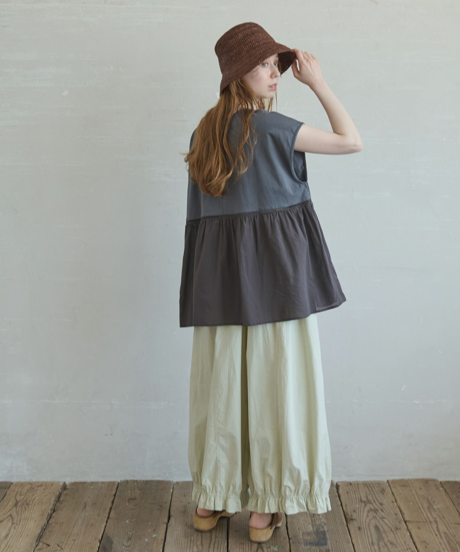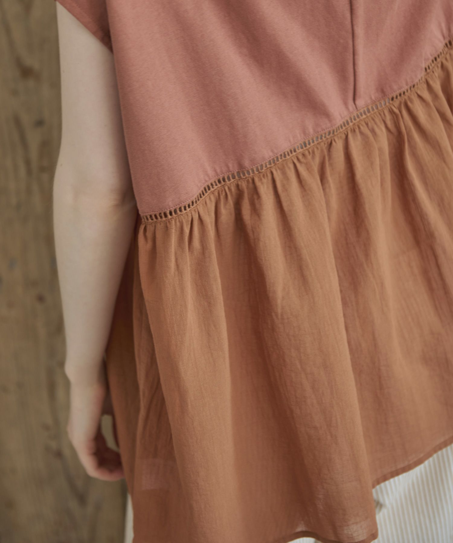 ストライプシャーリングギャザーブラウス[c1k3619b]