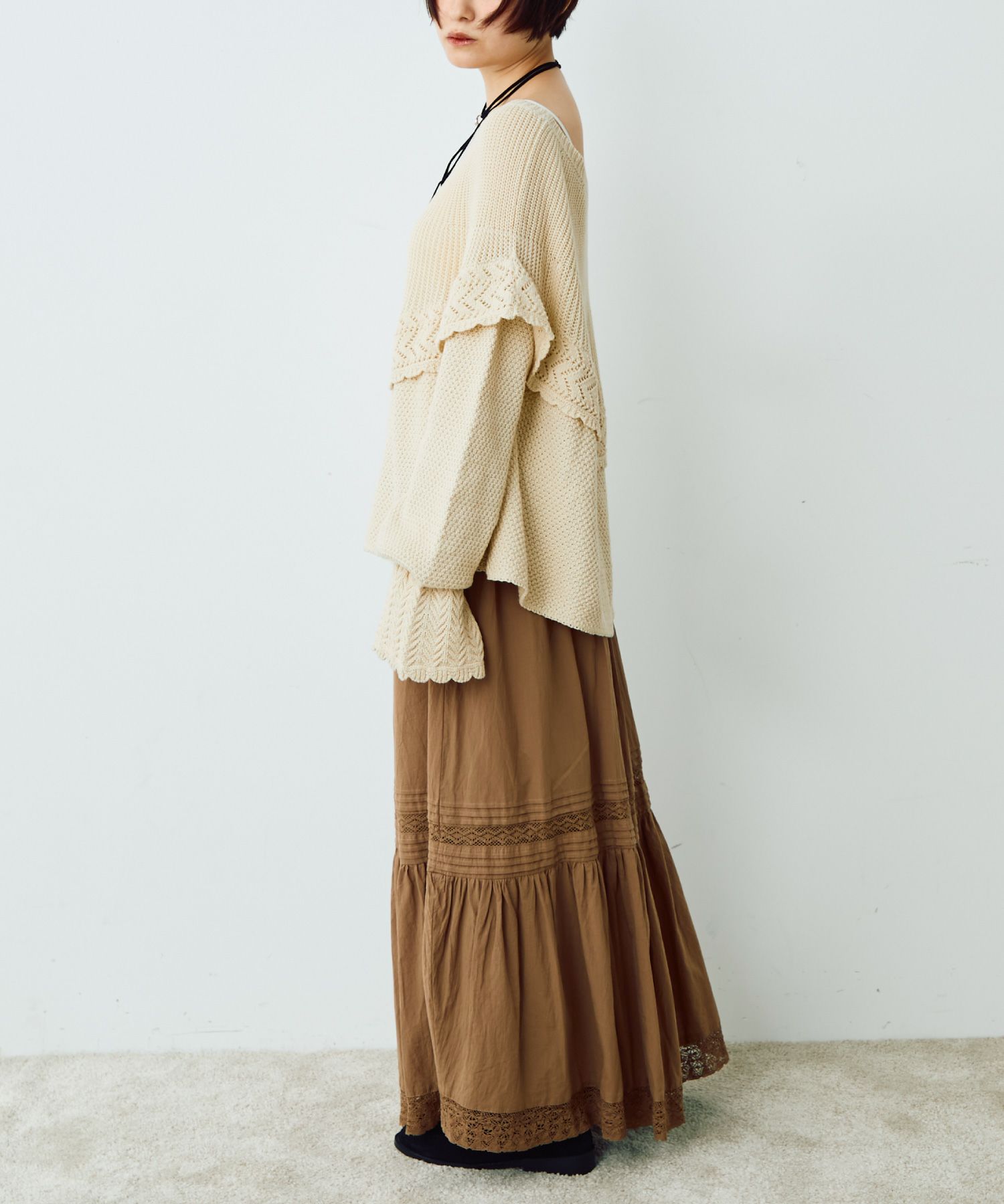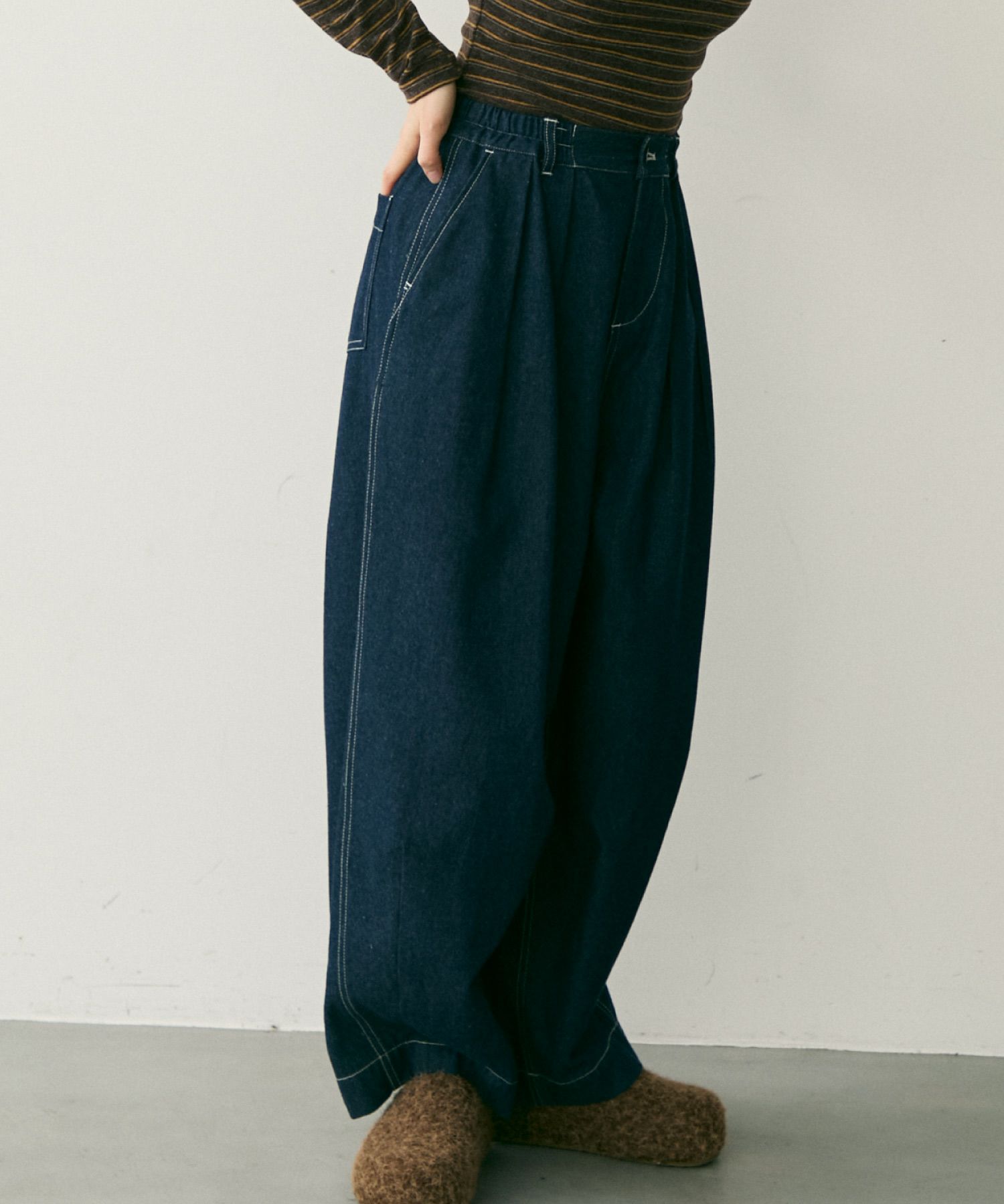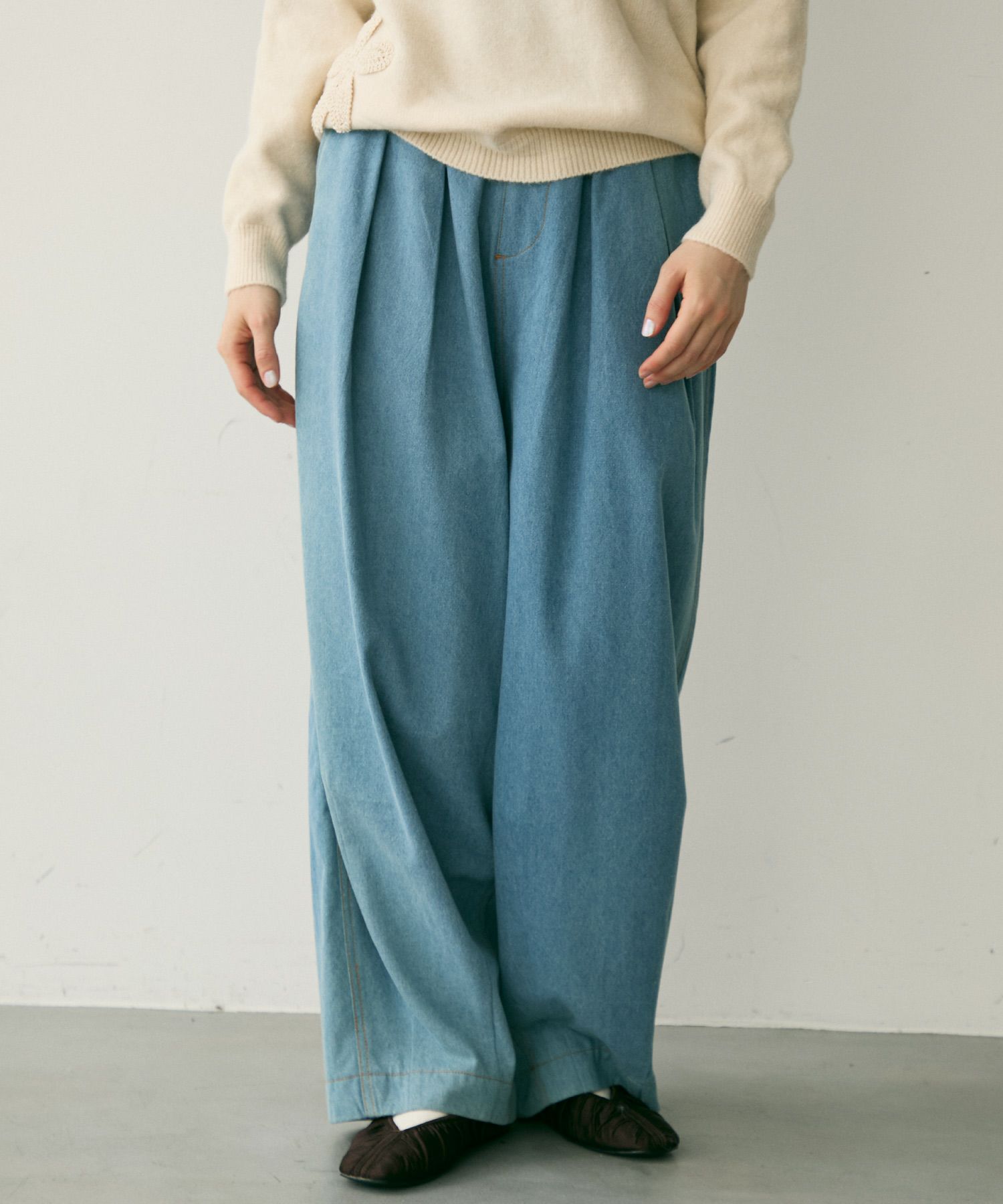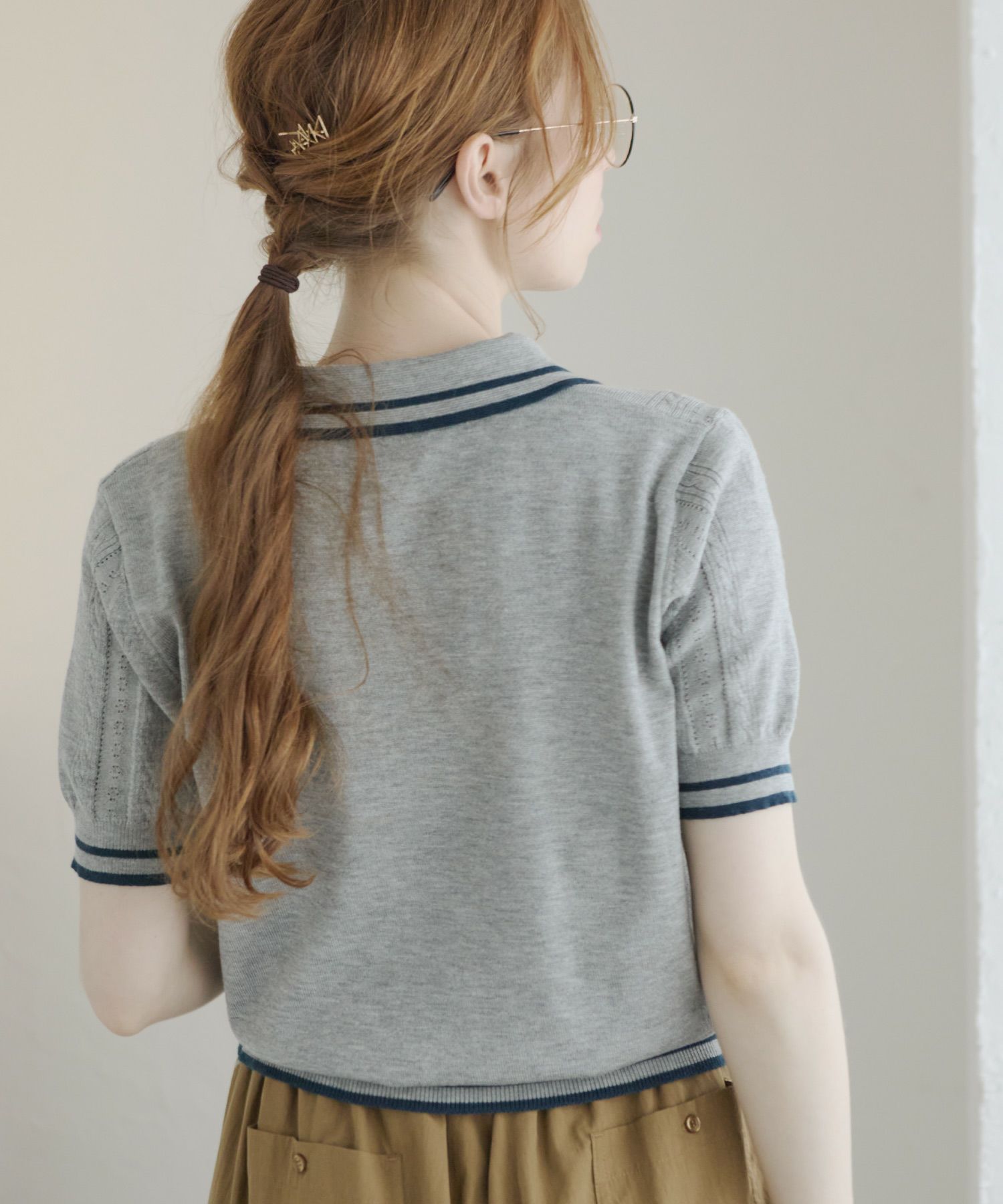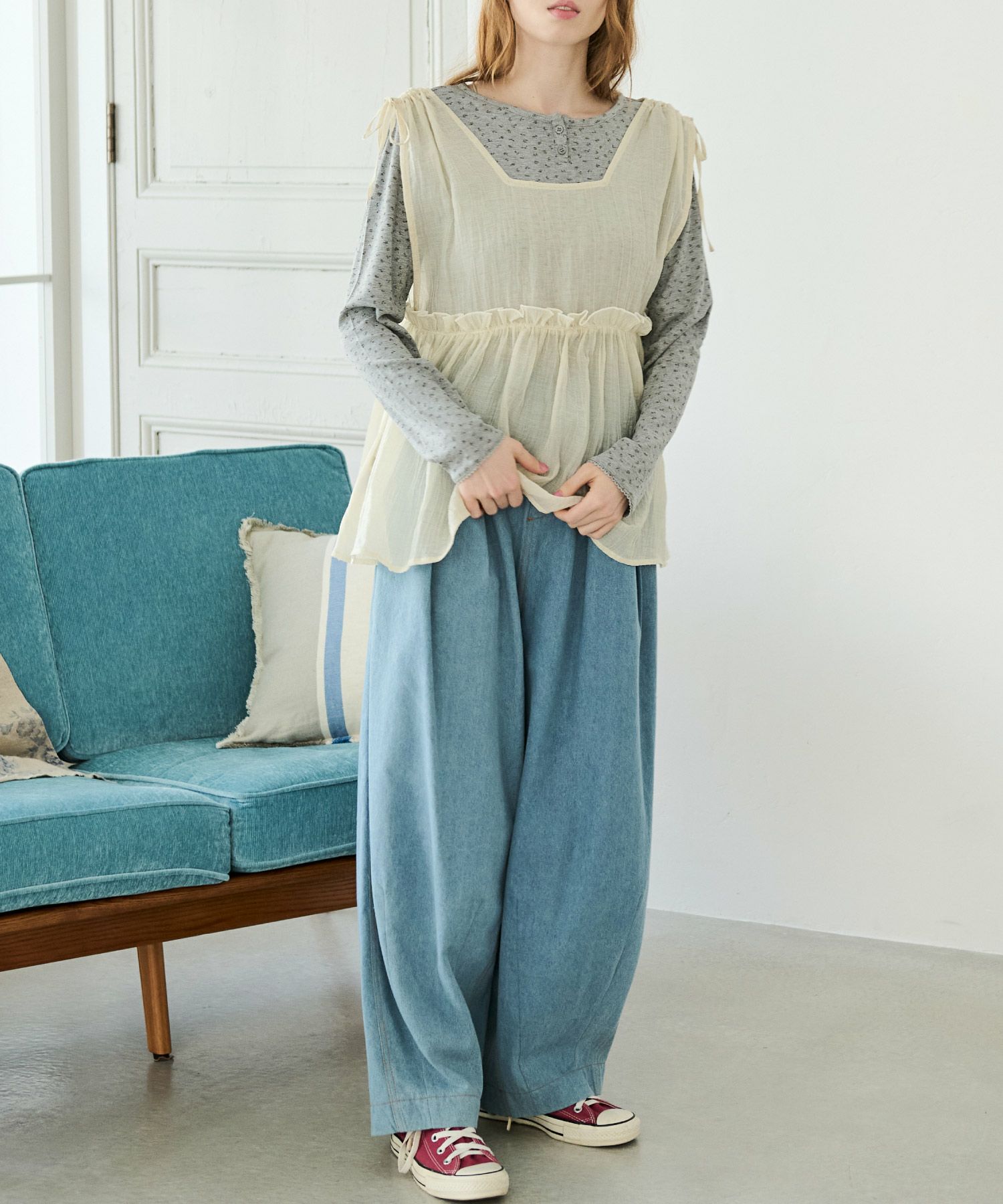 ストライプシャーリングギャザーブラウス[c1k3619b]