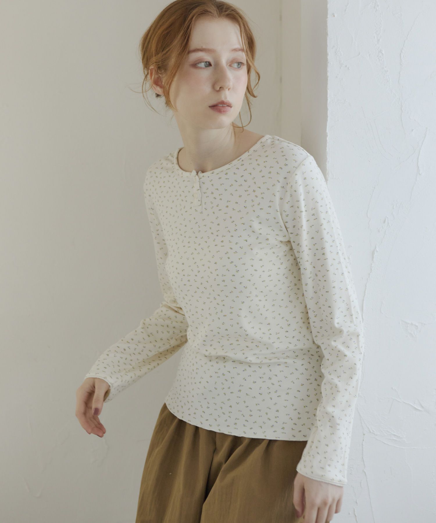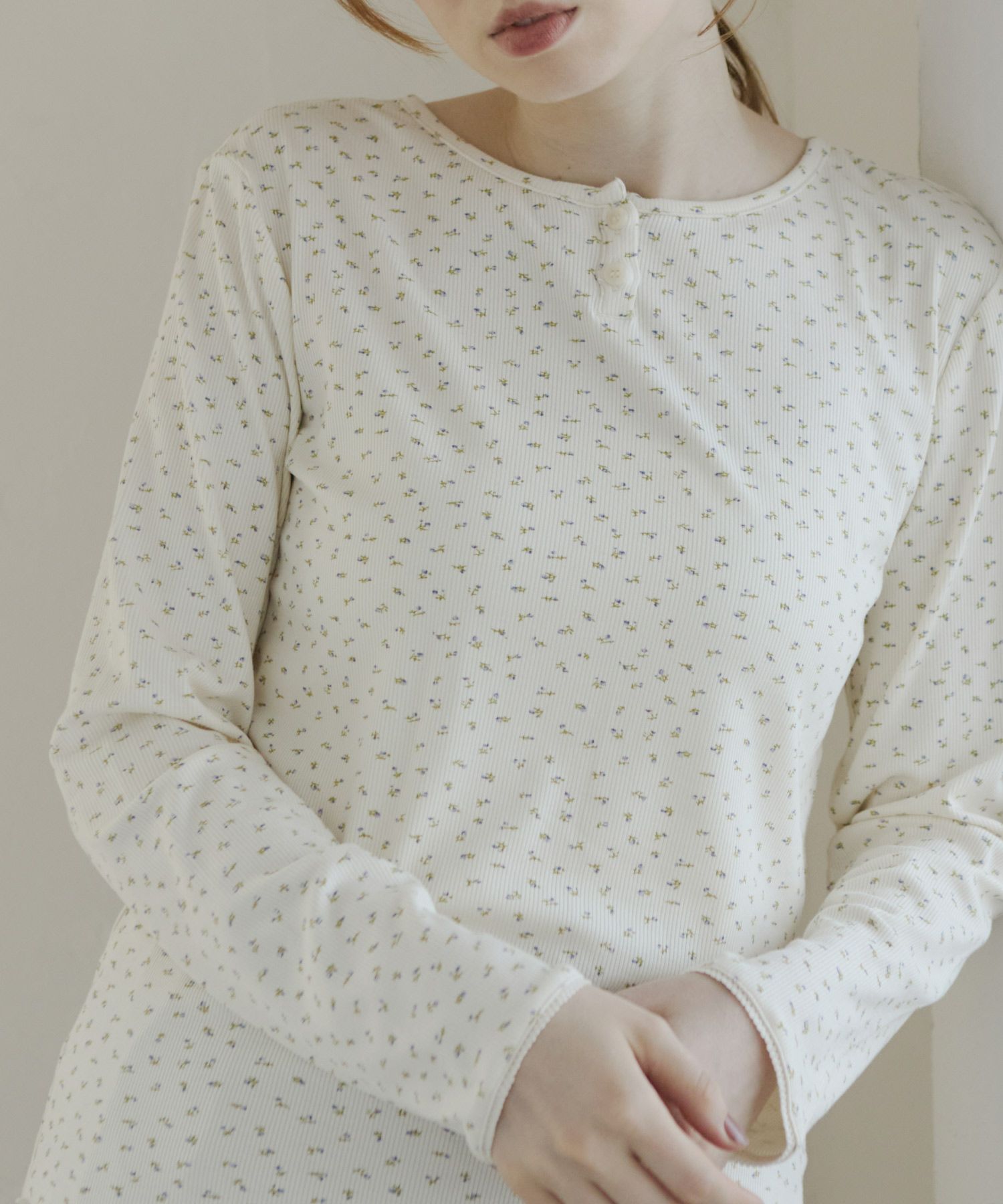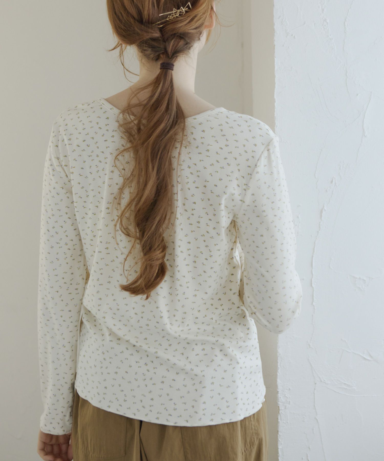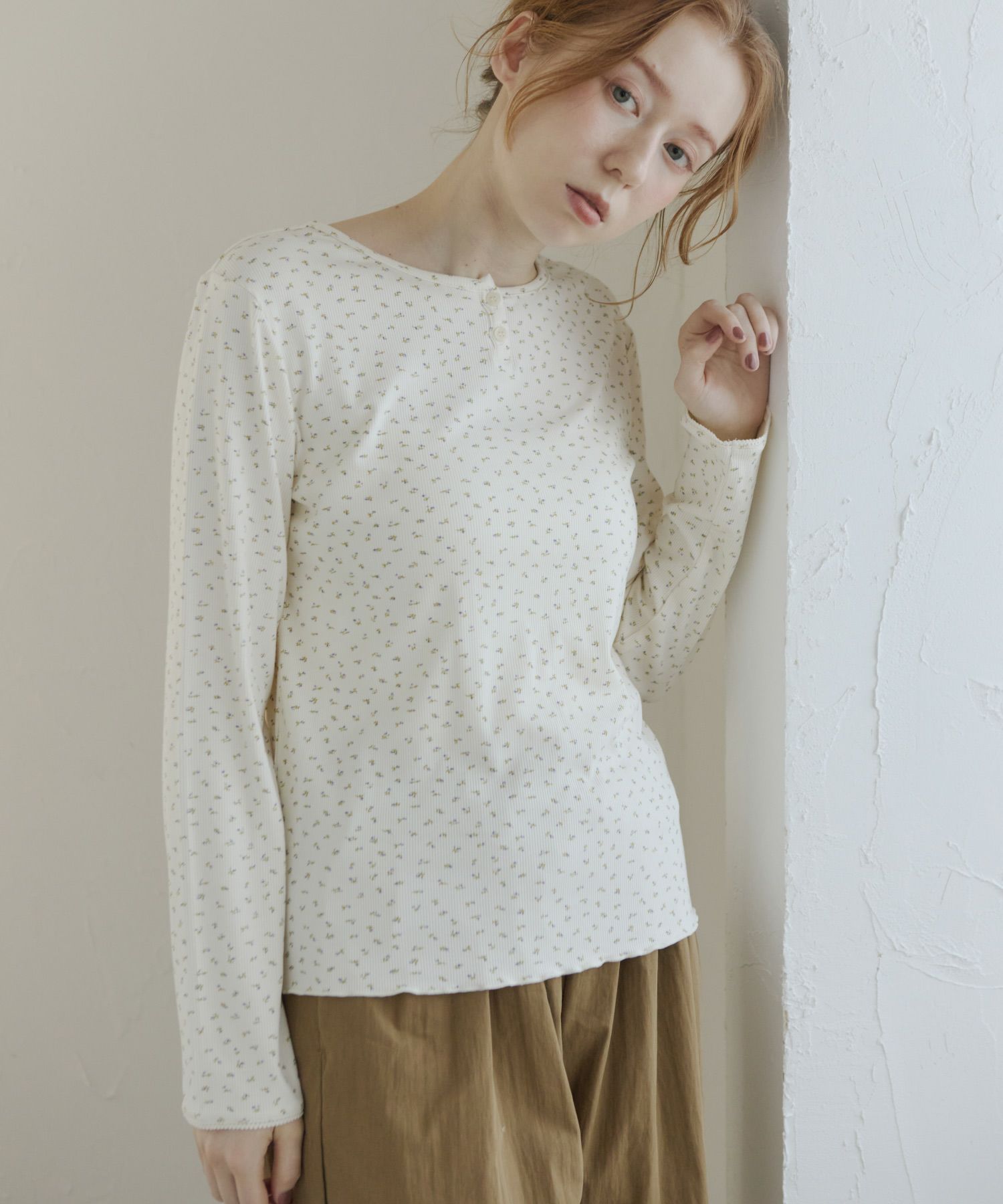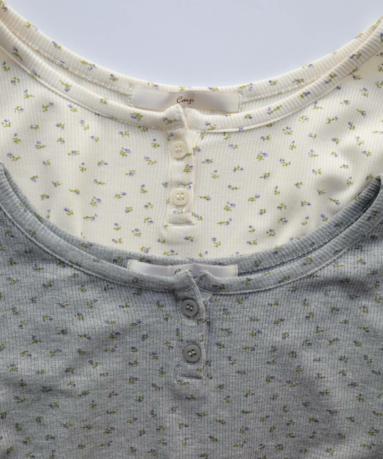 ヘンリーネックフラワーTシャツ[c1R3643]