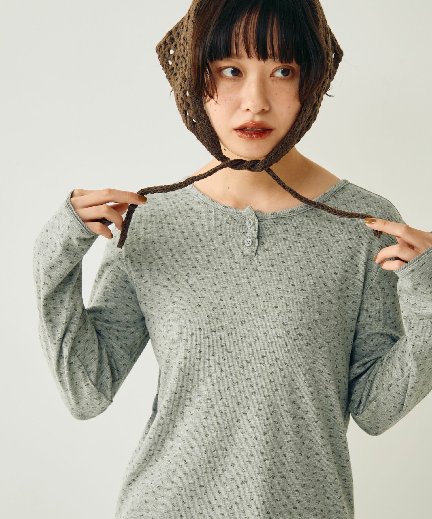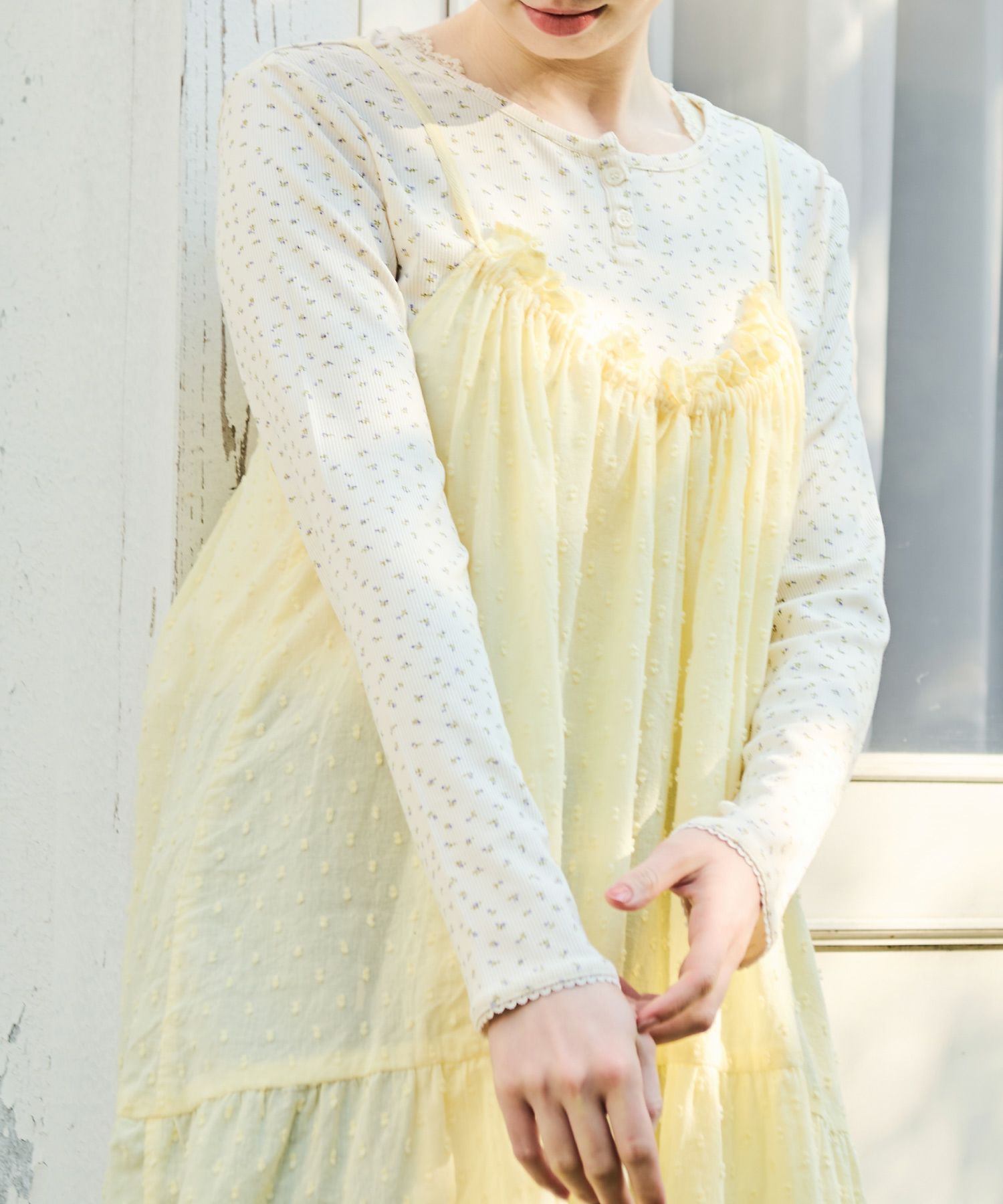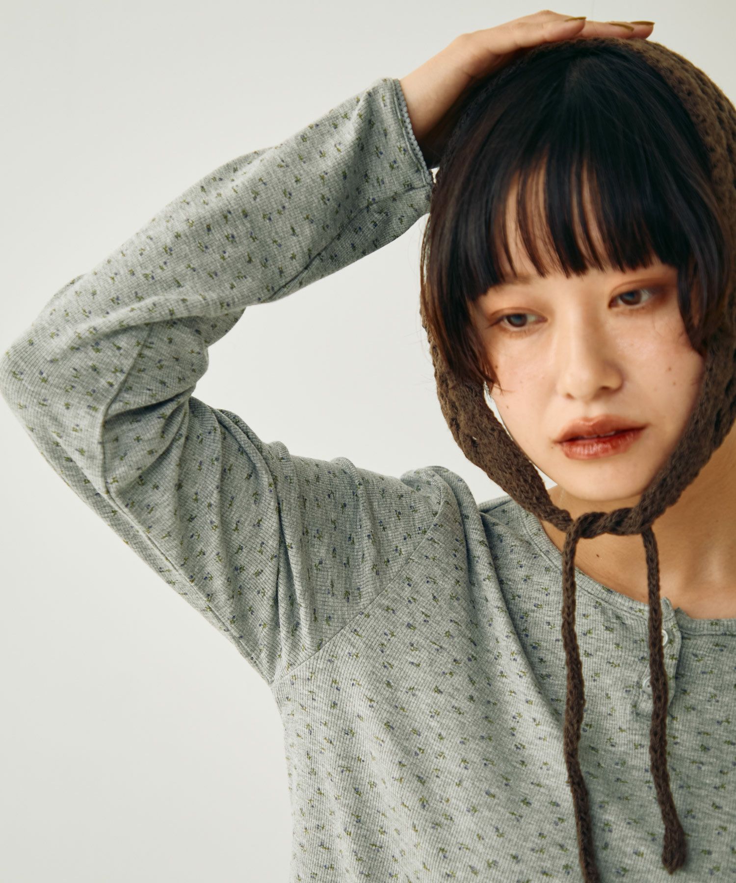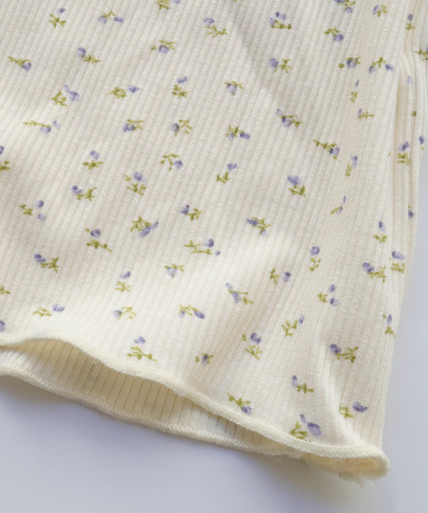 ヘンリーネックフラワーTシャツ[c1R3643]