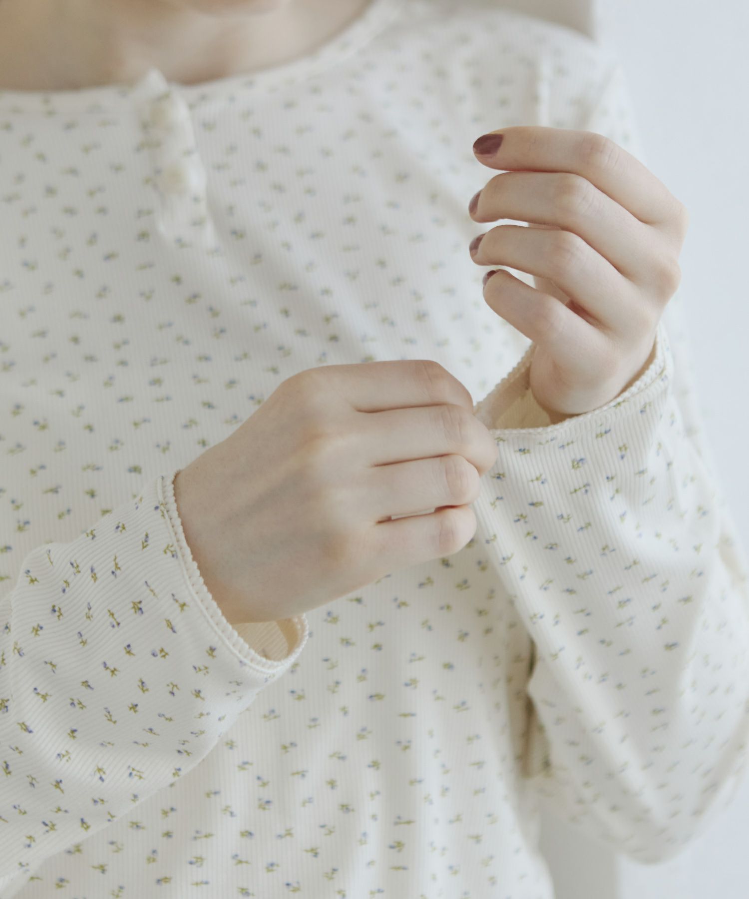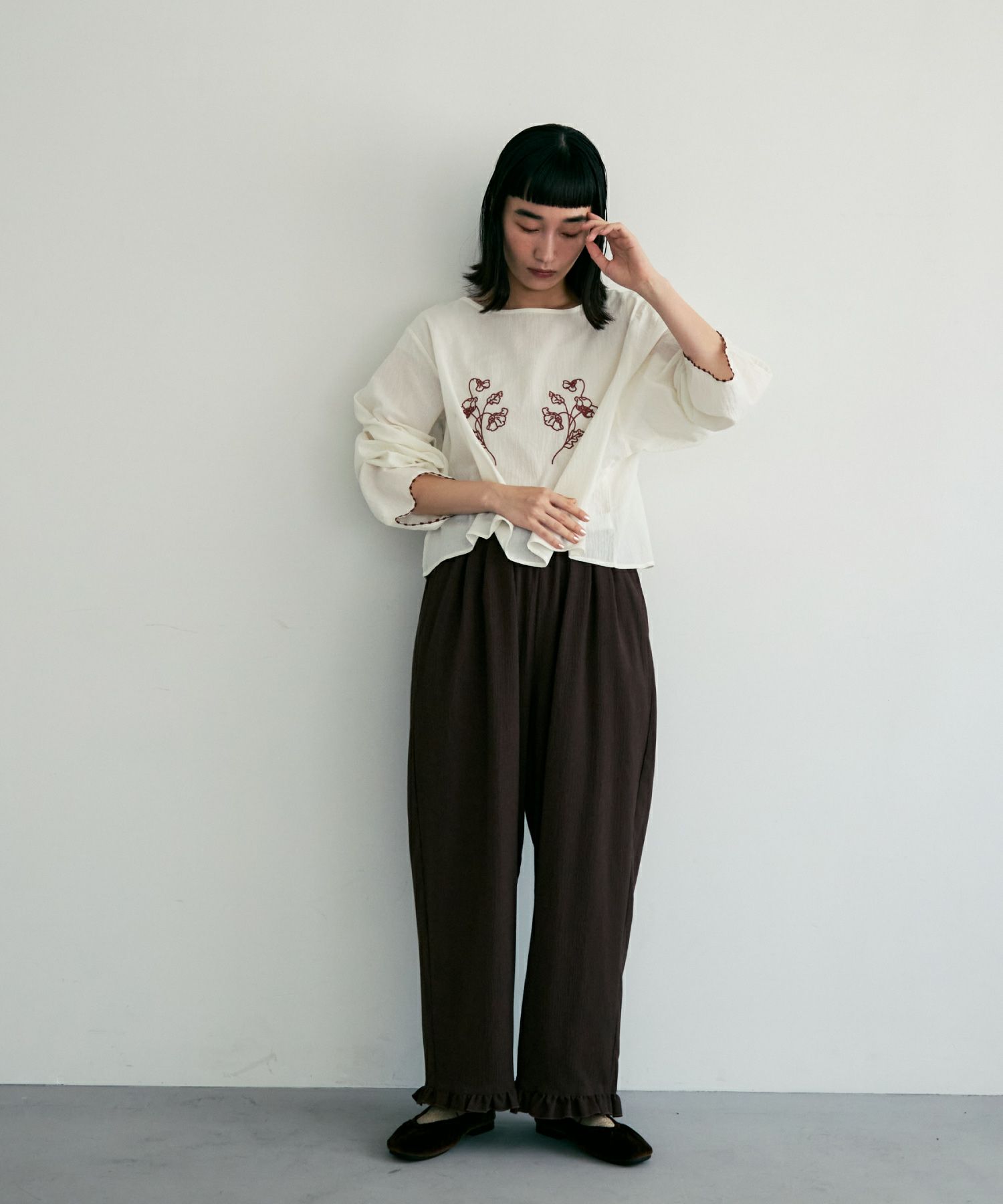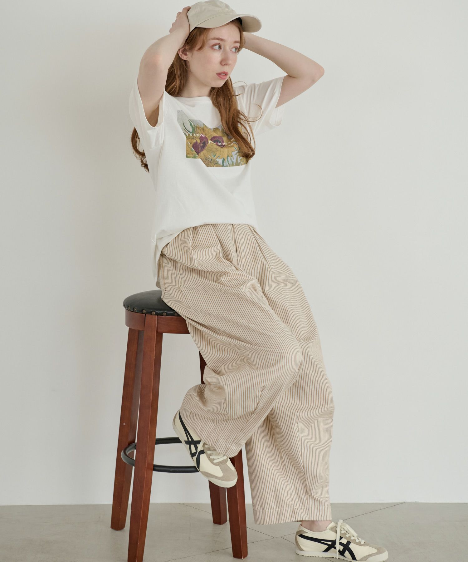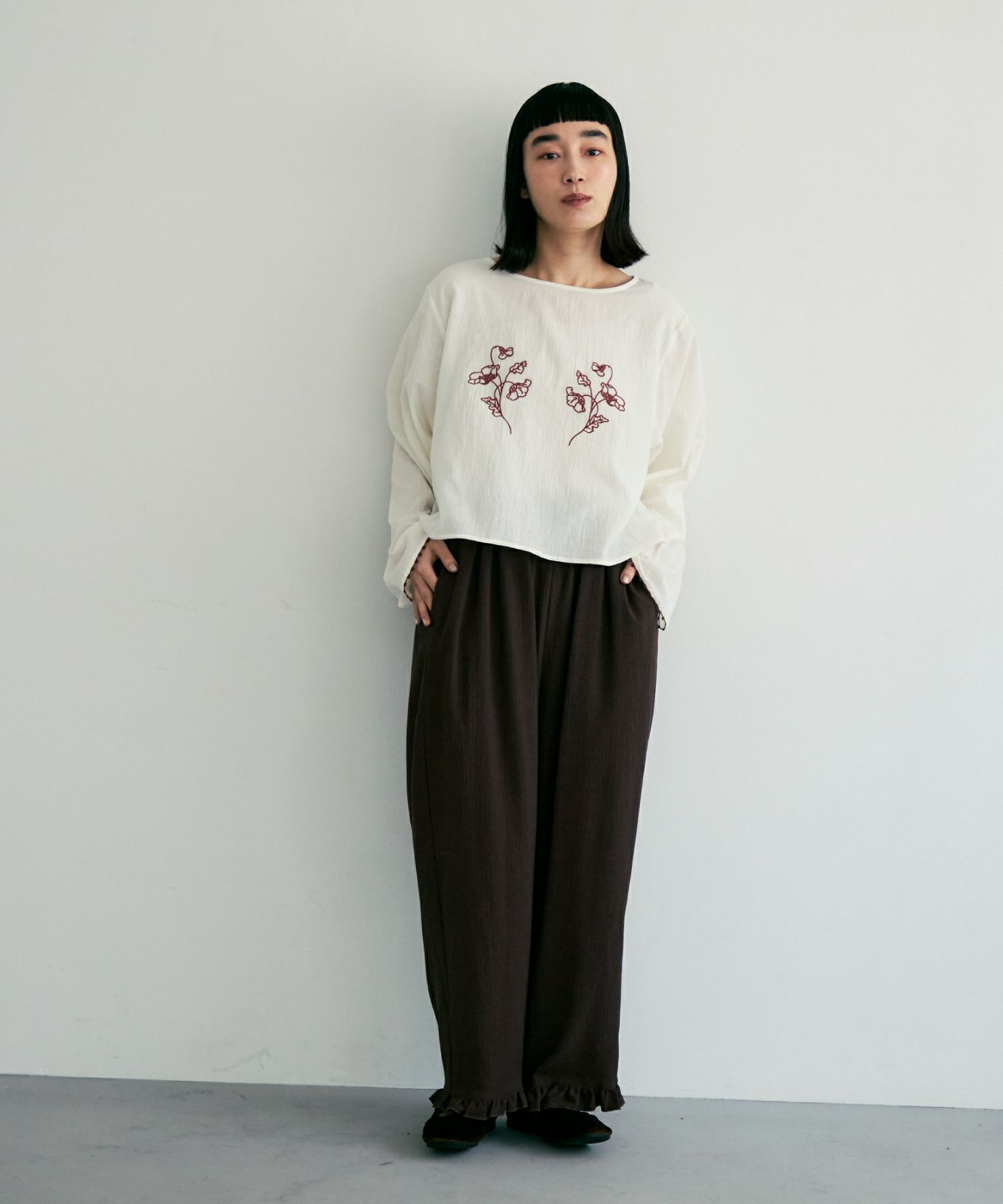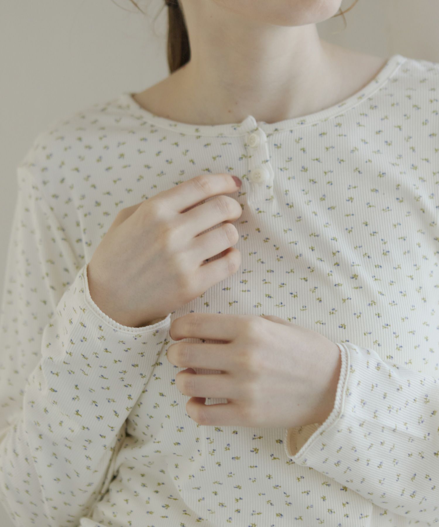 ヘンリーネックフラワーTシャツ[c1R3643]