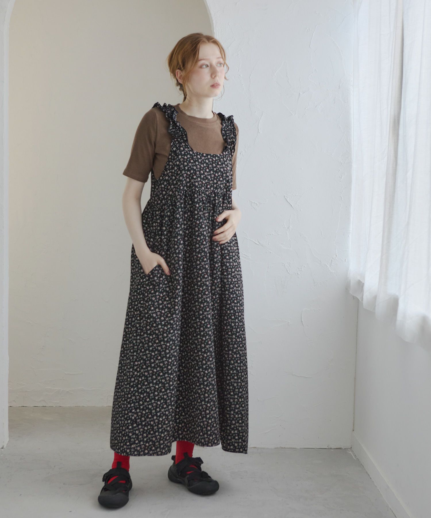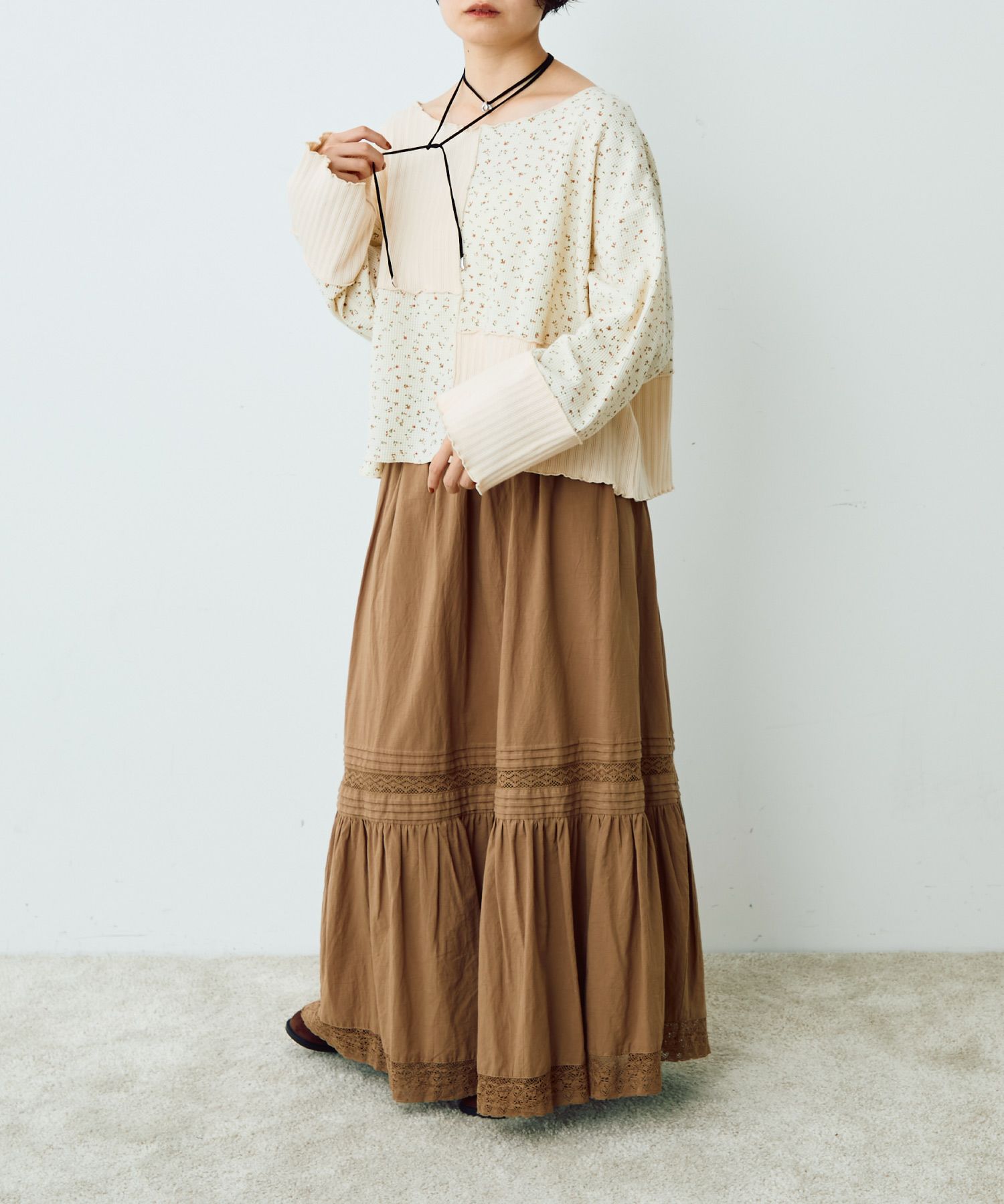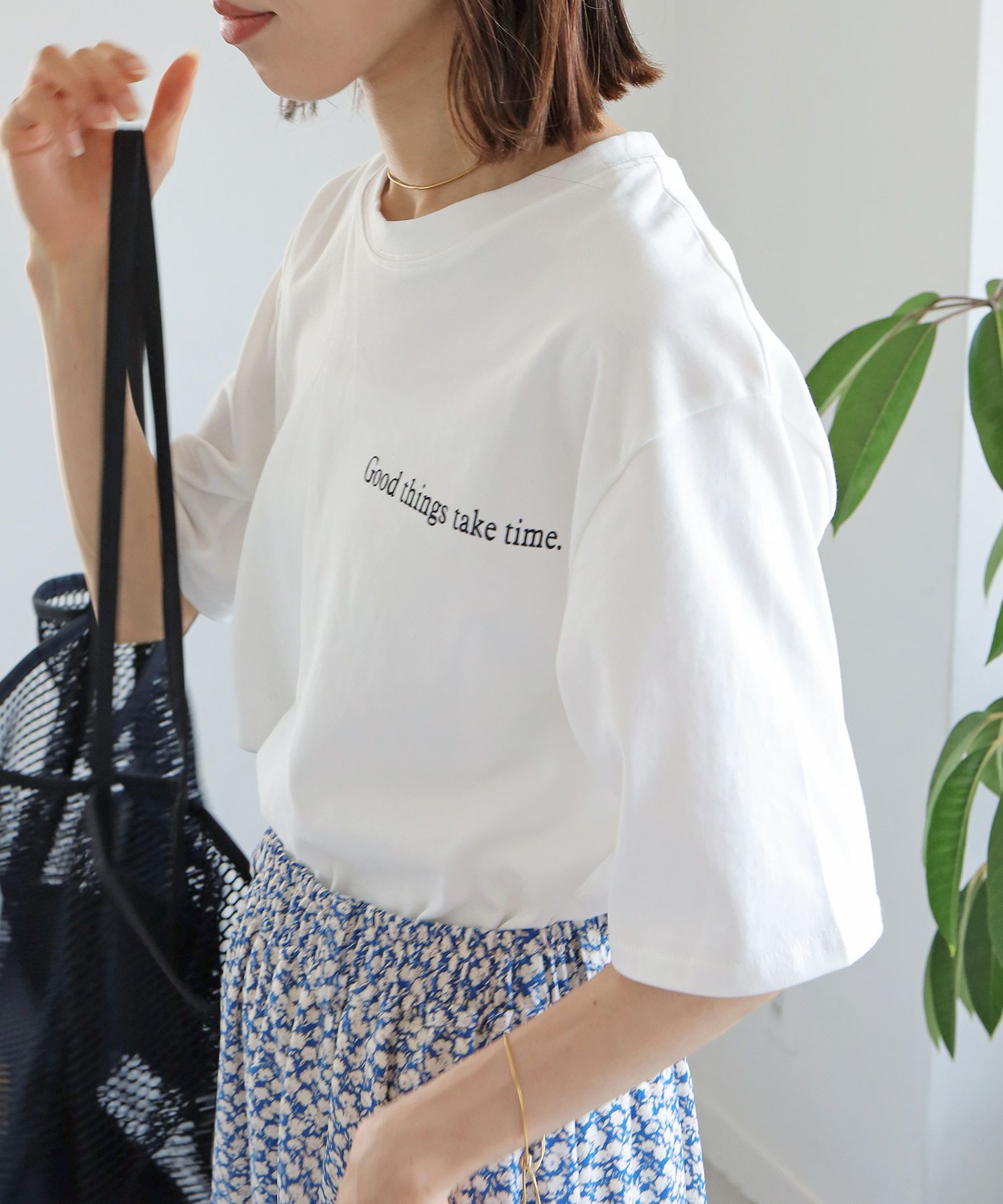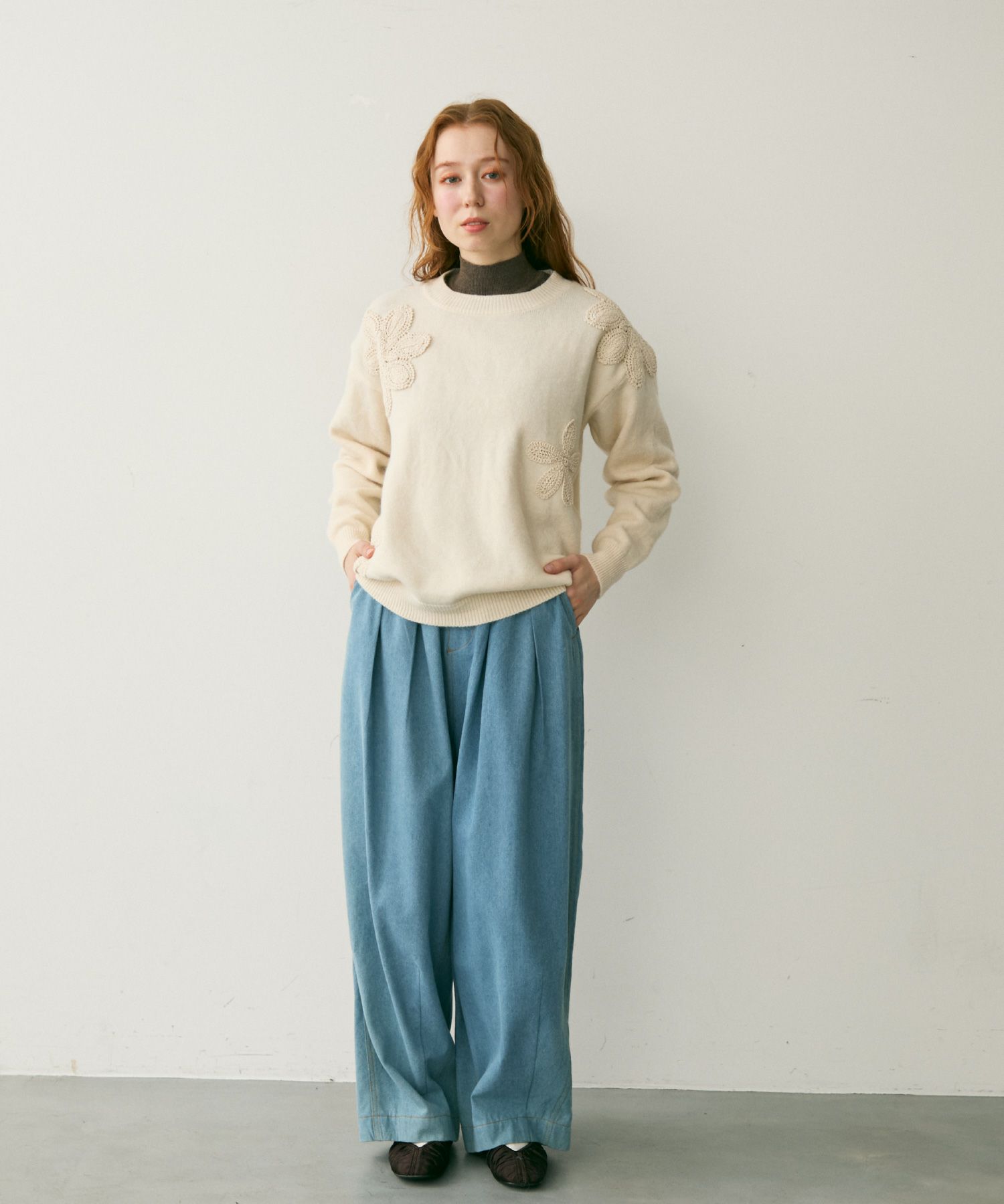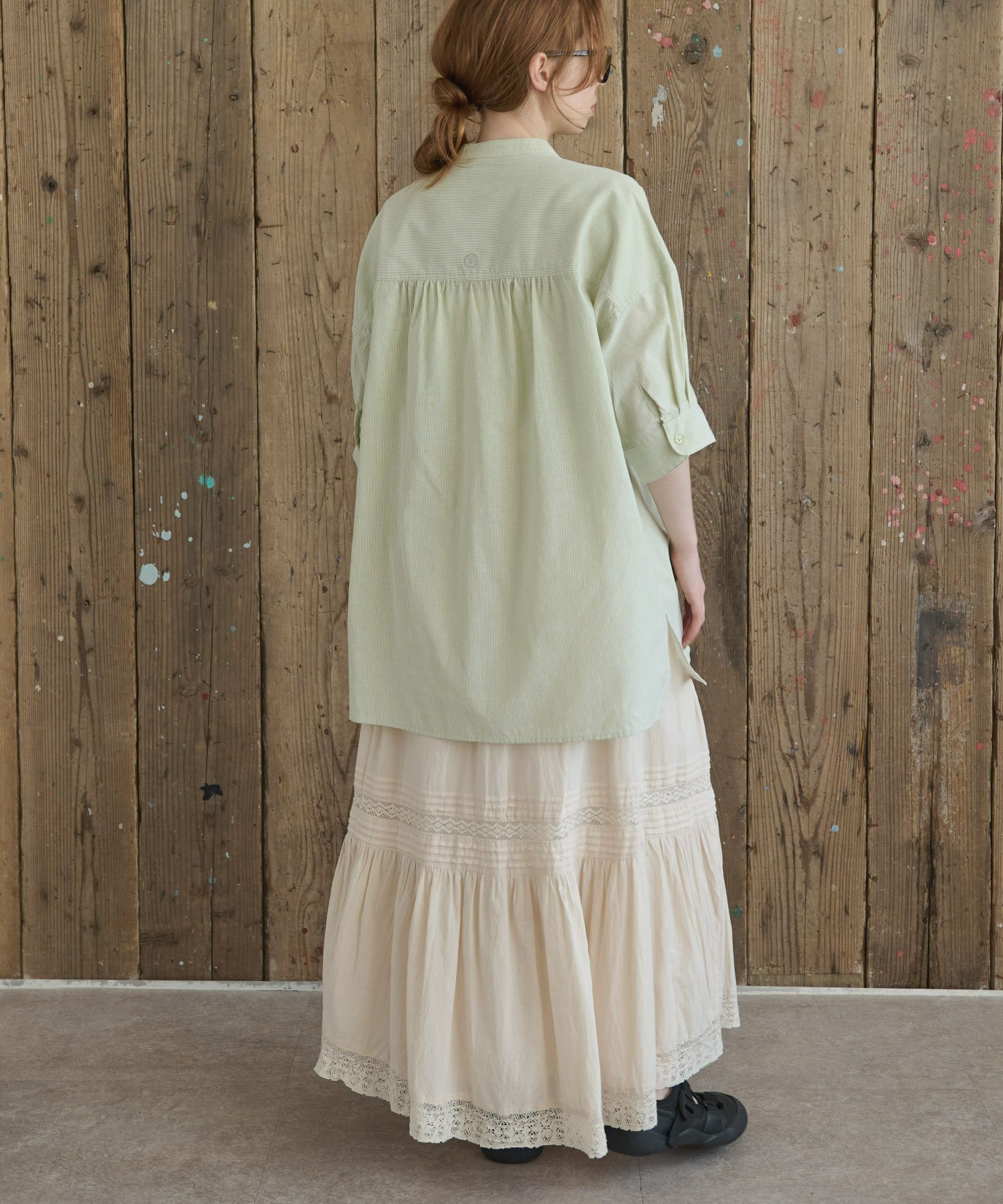 ヘンリーネックフラワーTシャツ[c1R3643]