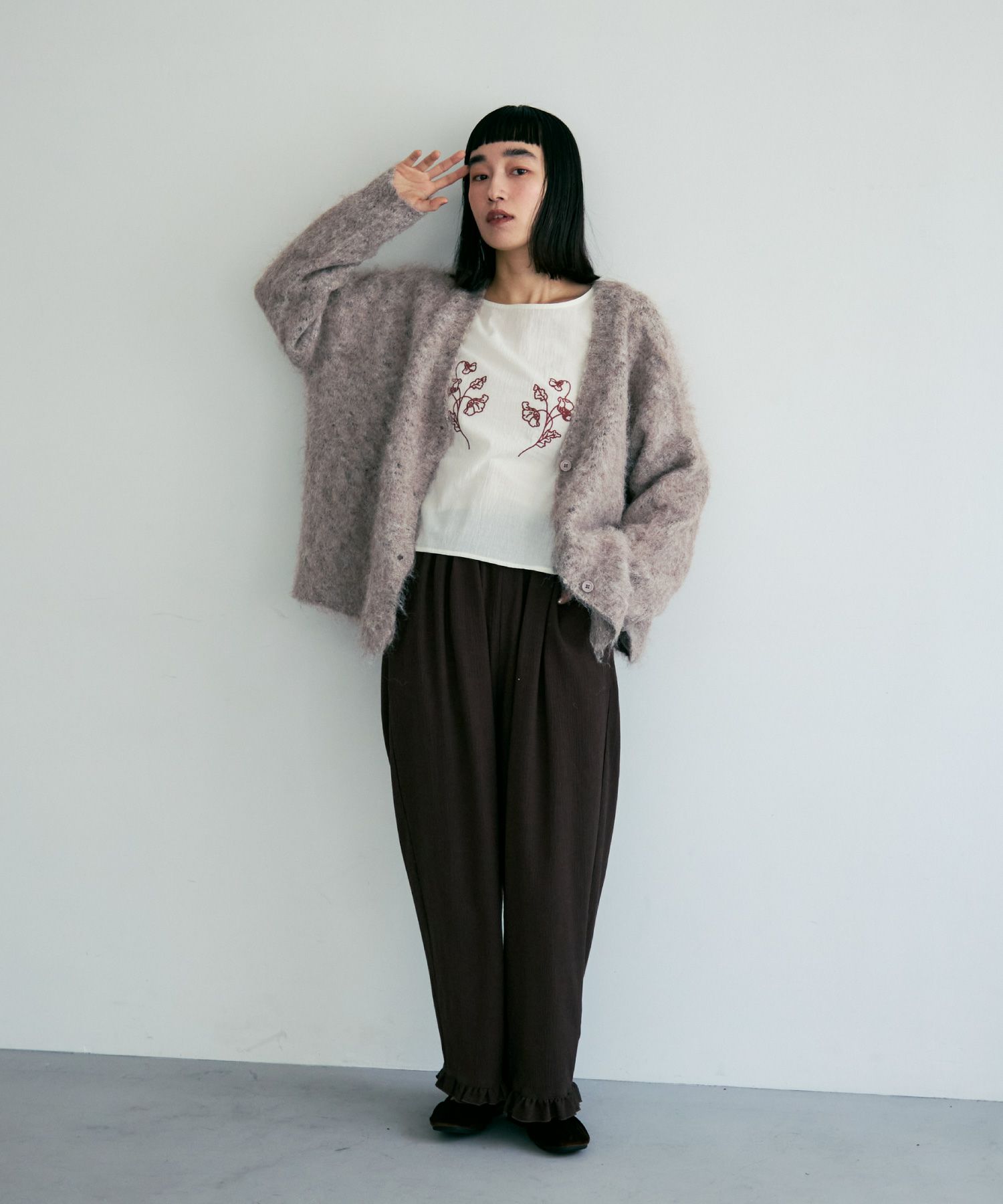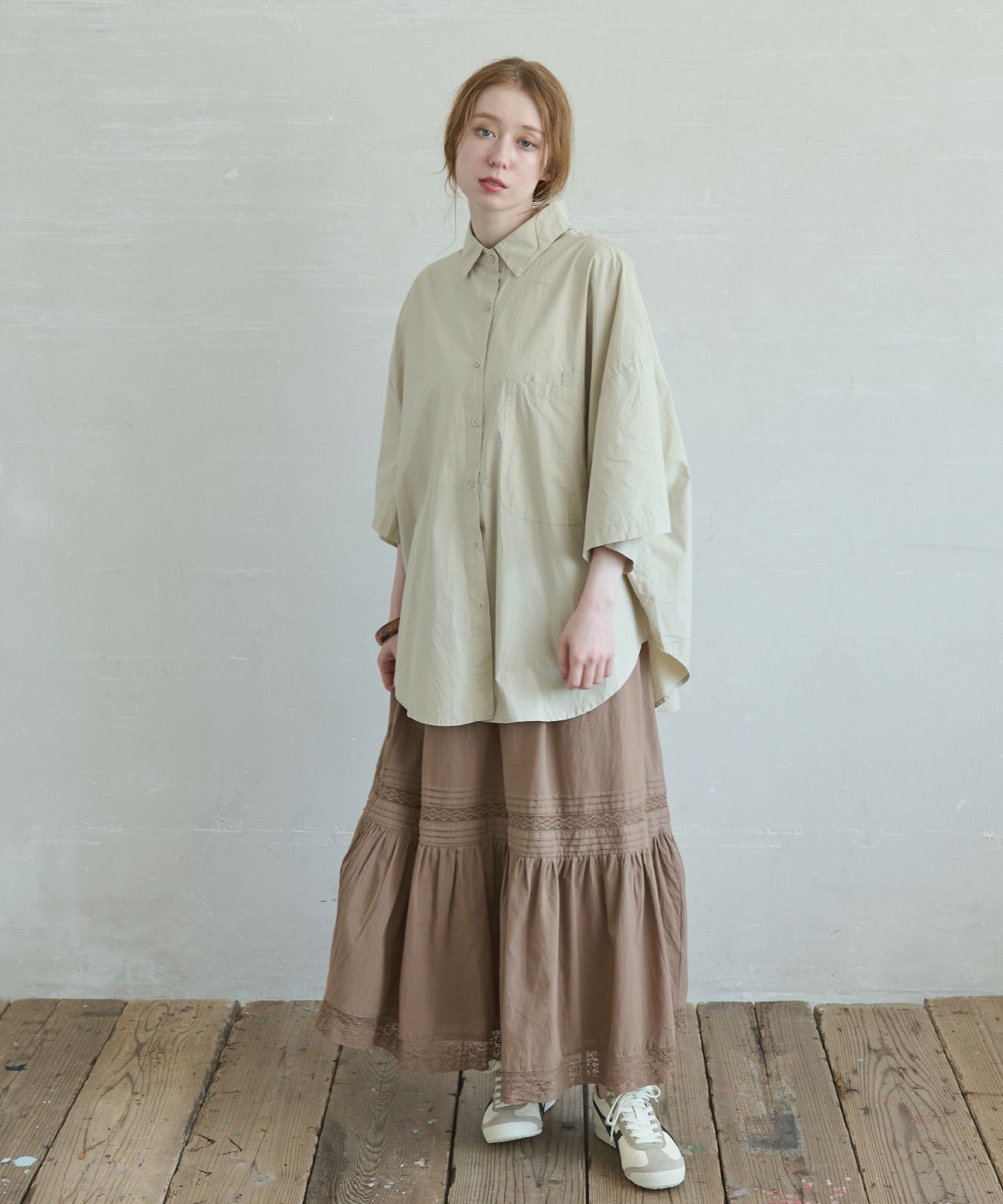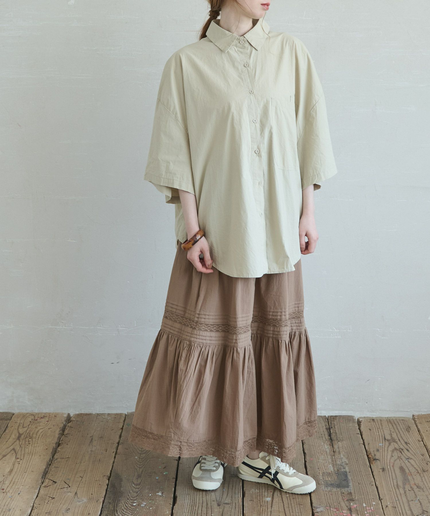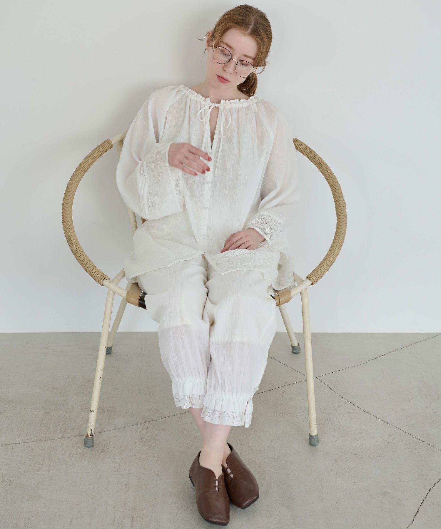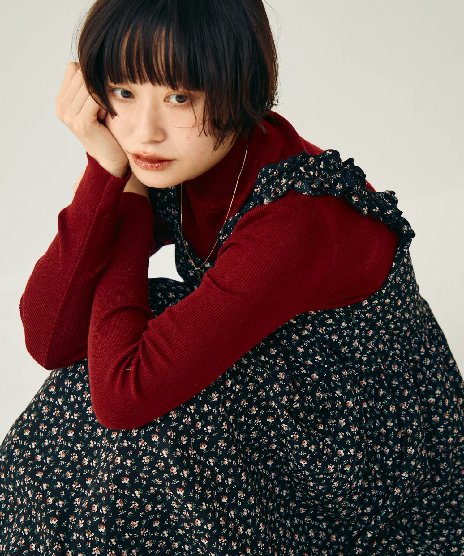 ヘンリーネックフラワーTシャツ[c1R3643]