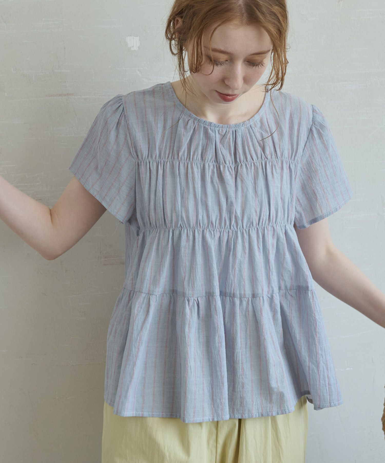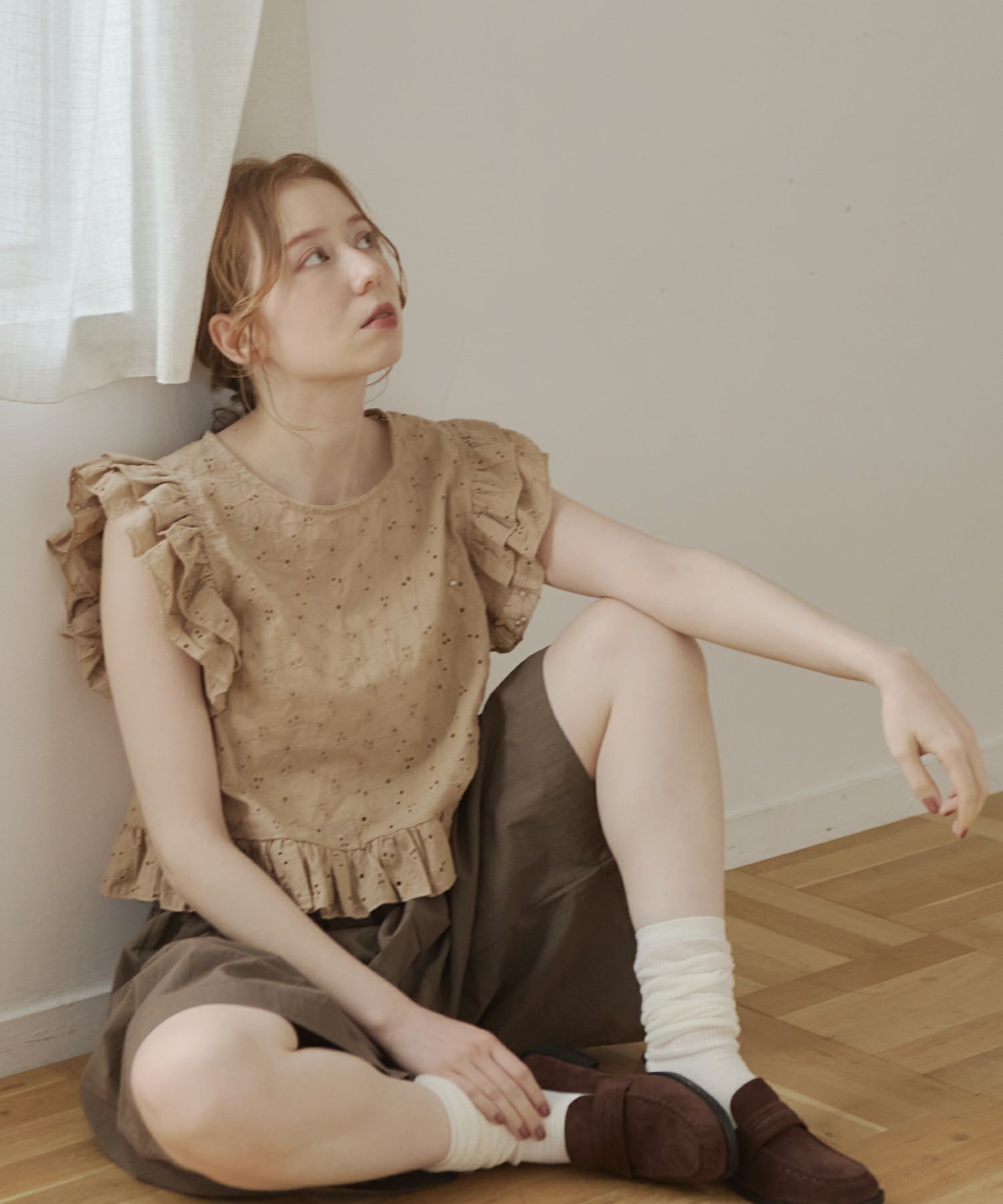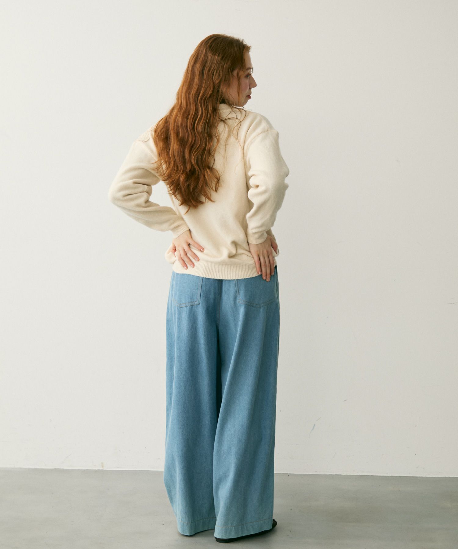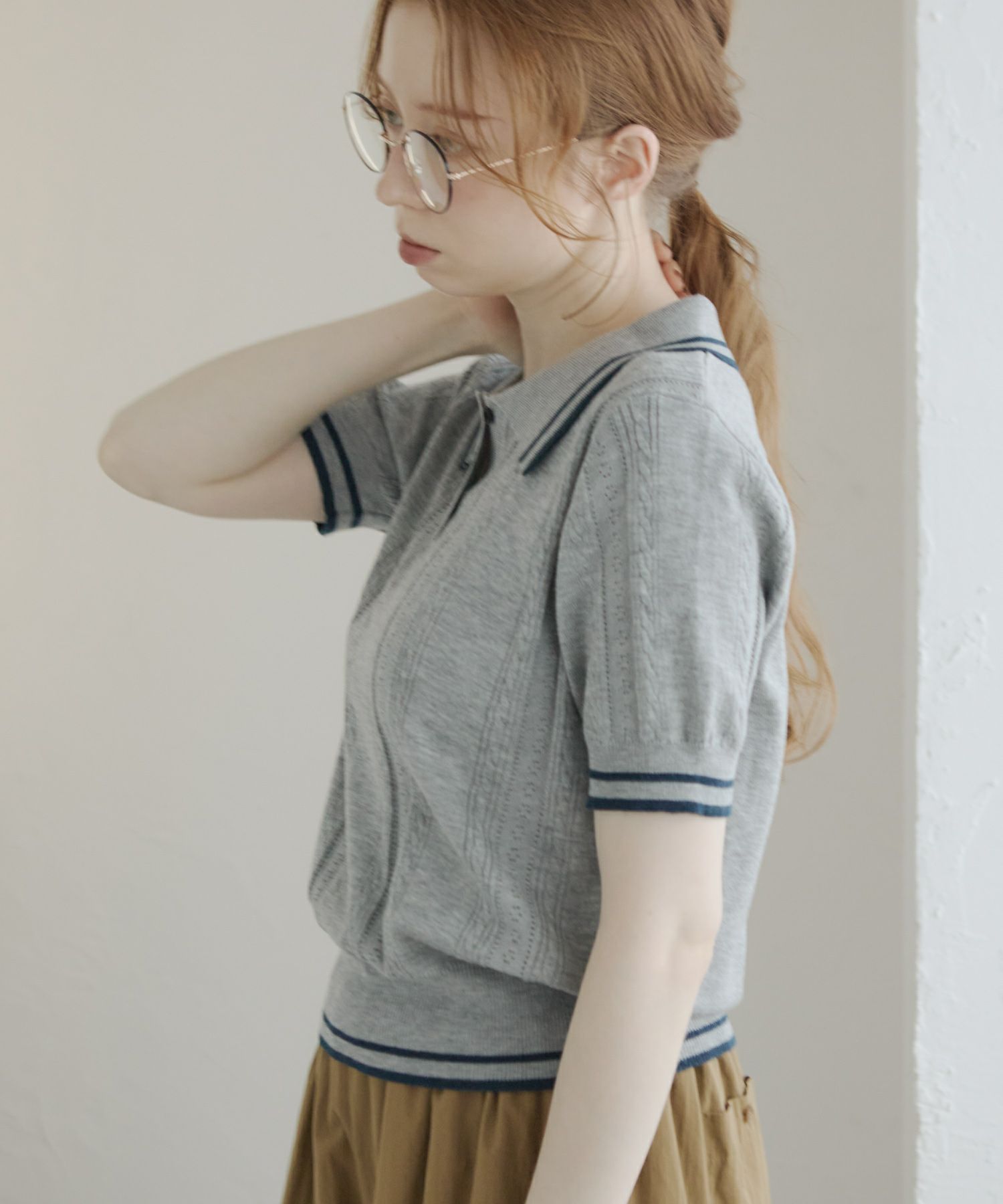 ヘンリーネックフラワーTシャツ[c1R3643]