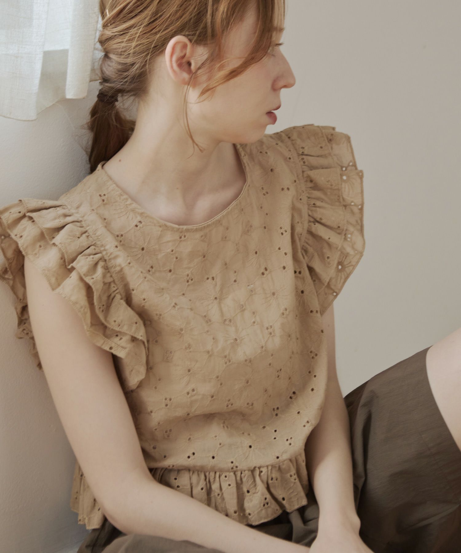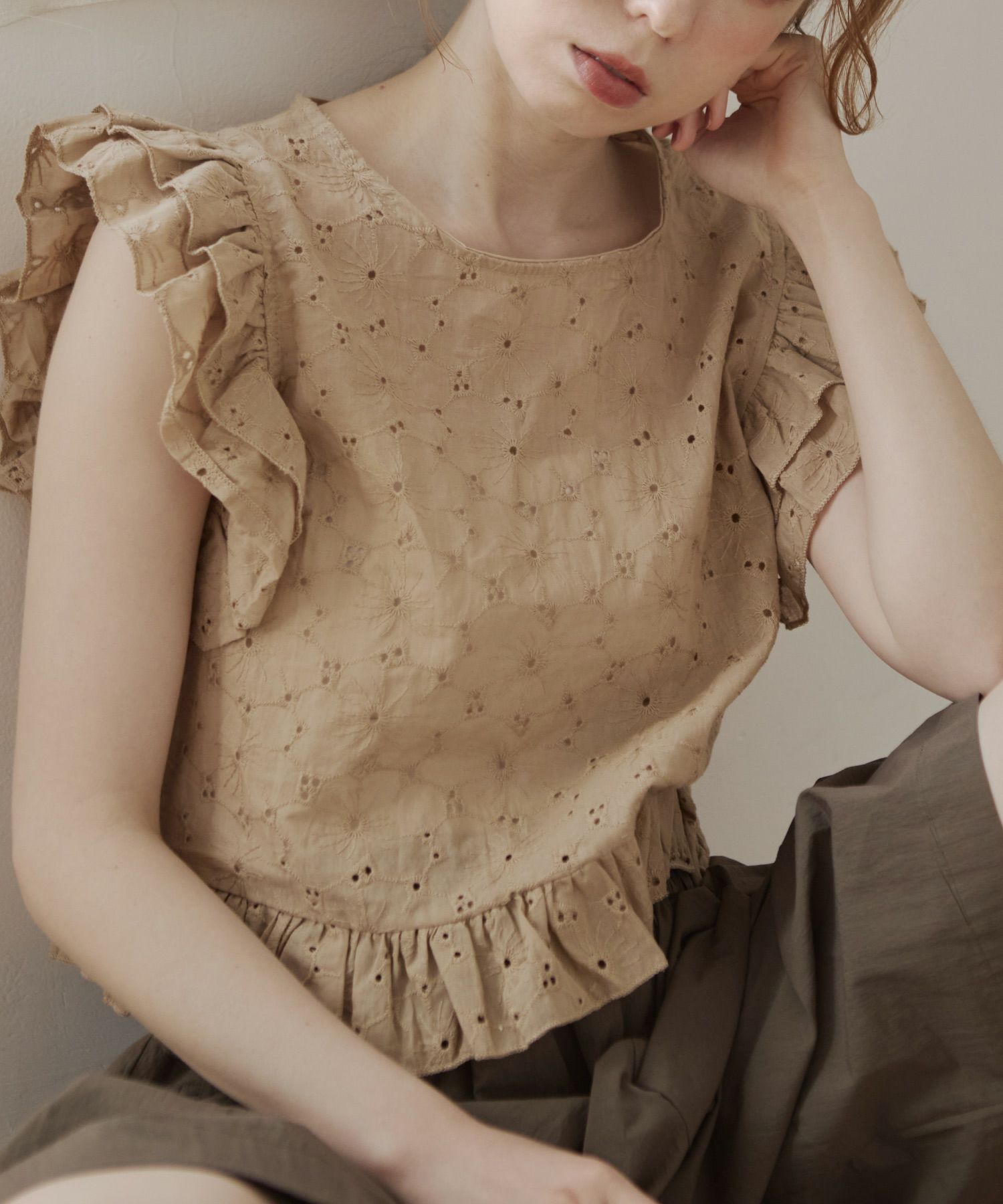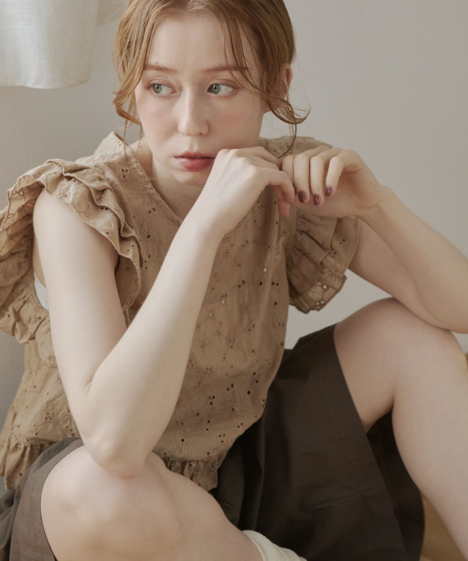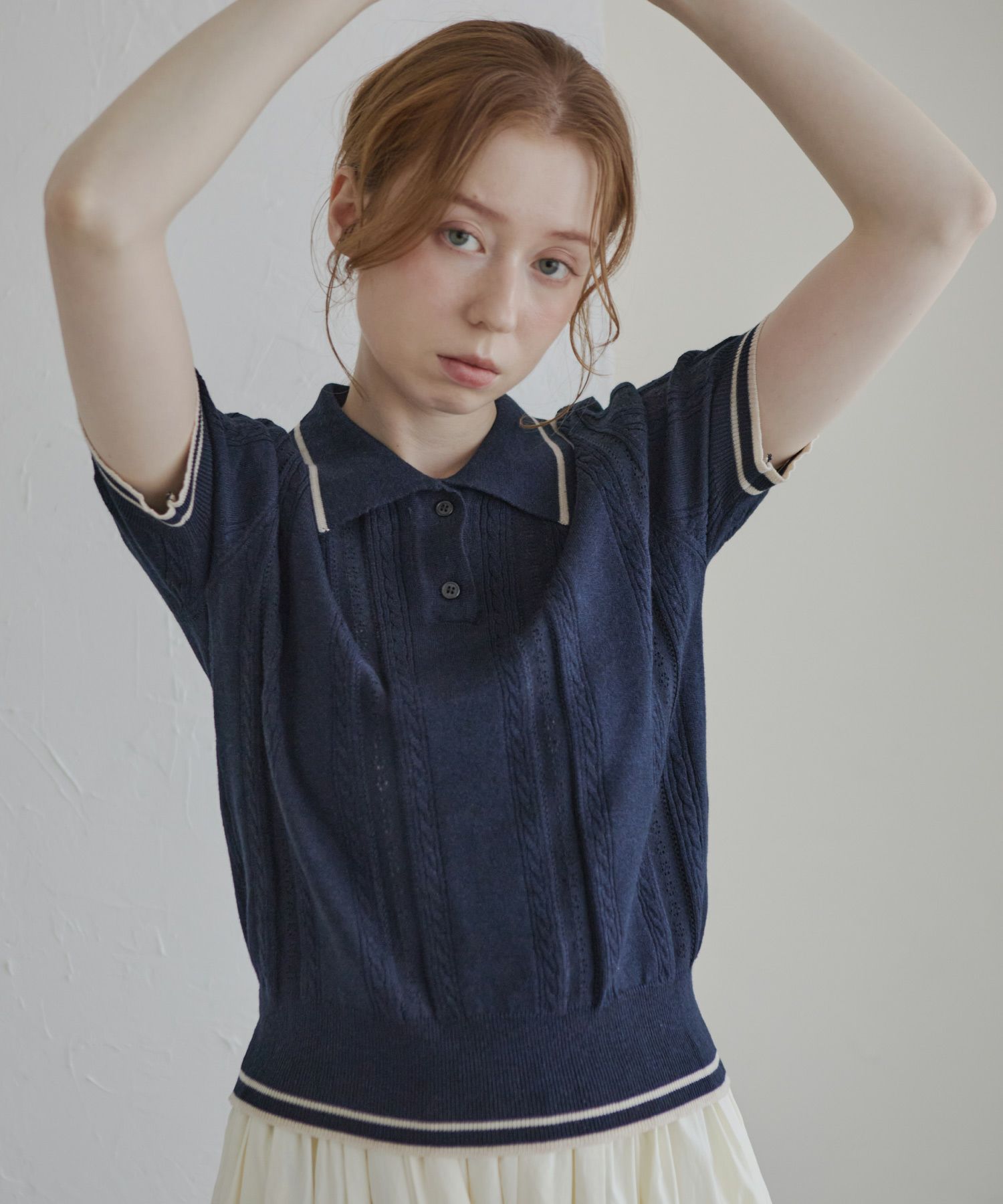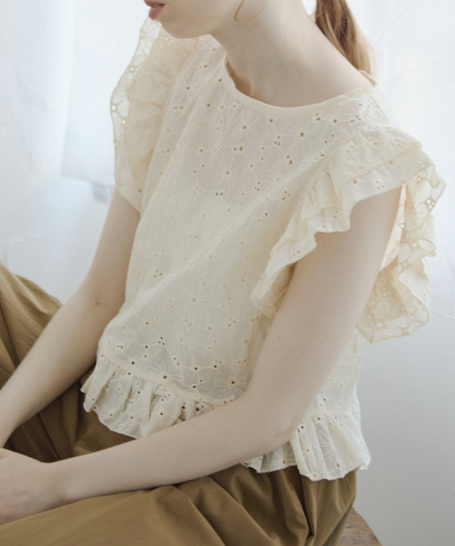 ヘンリーネックフラワーTシャツ[c1R3643]