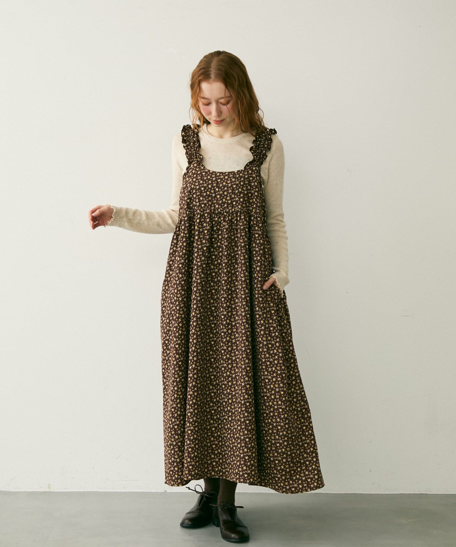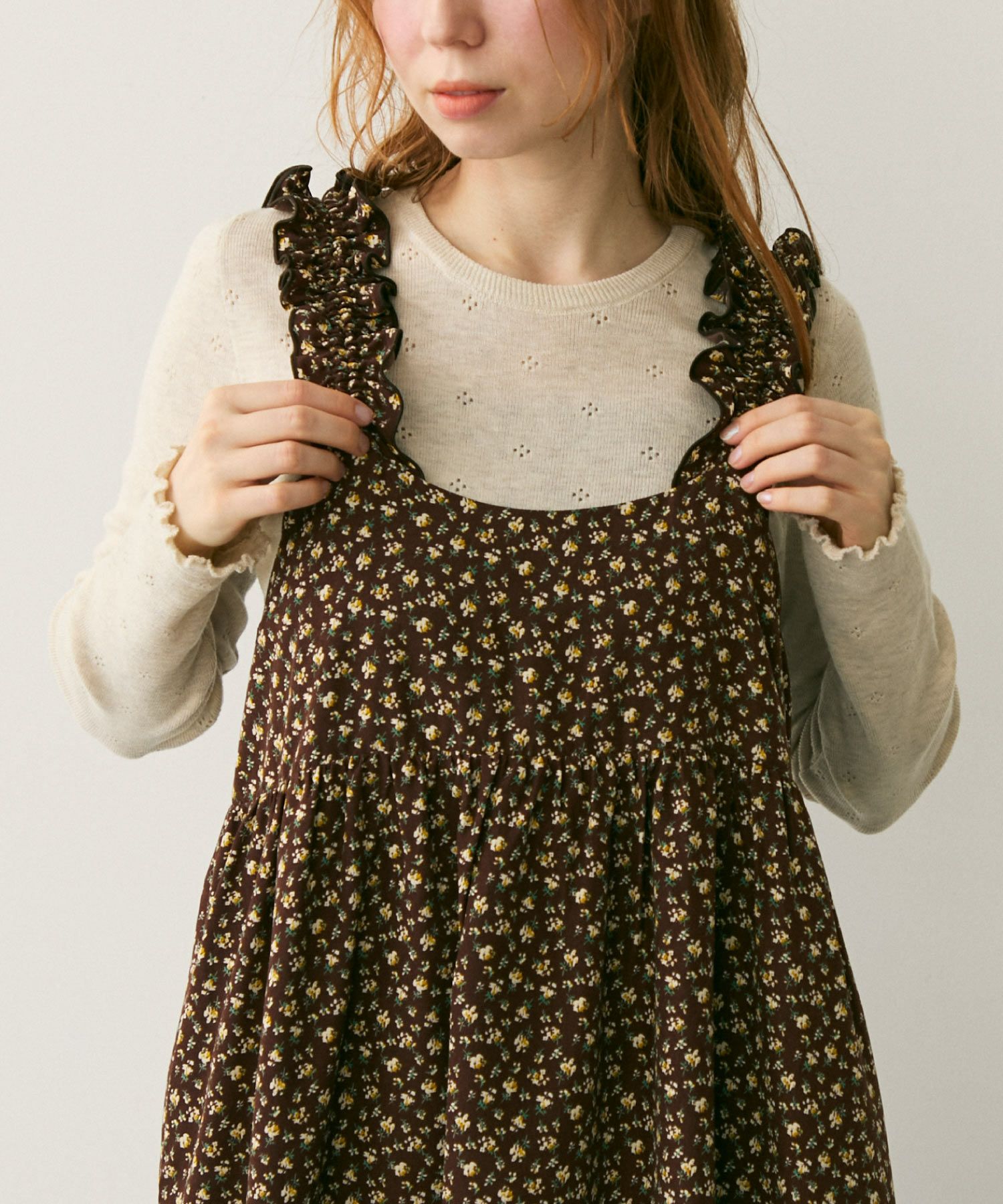 フリルショルダーフラワーワンピース[c2R3588]