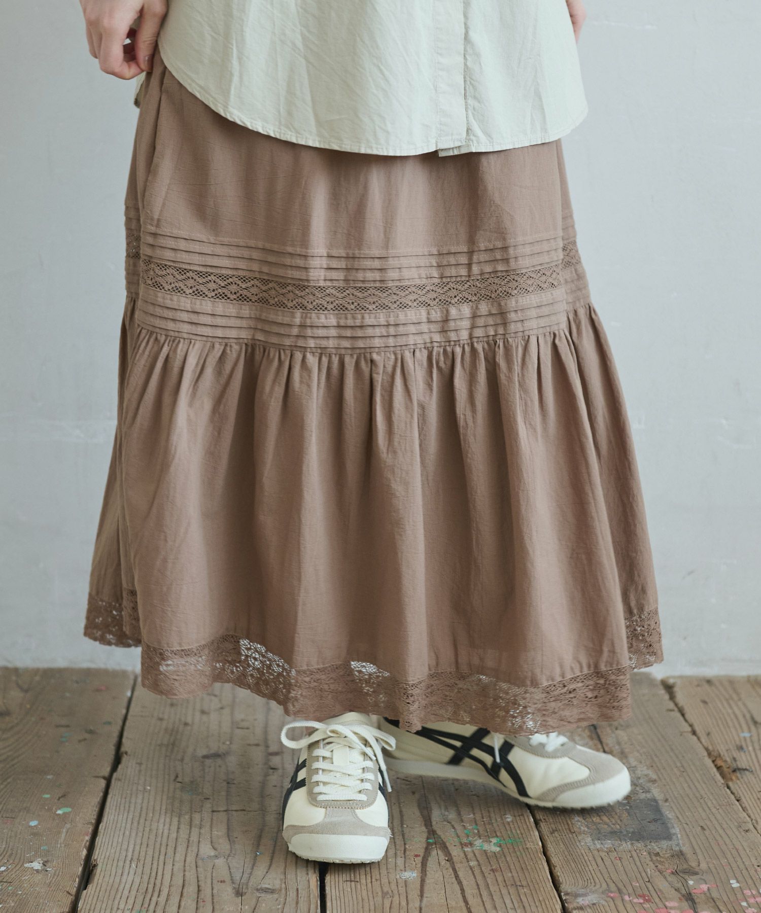タックデザインレースティアードスカート[c2R3606]