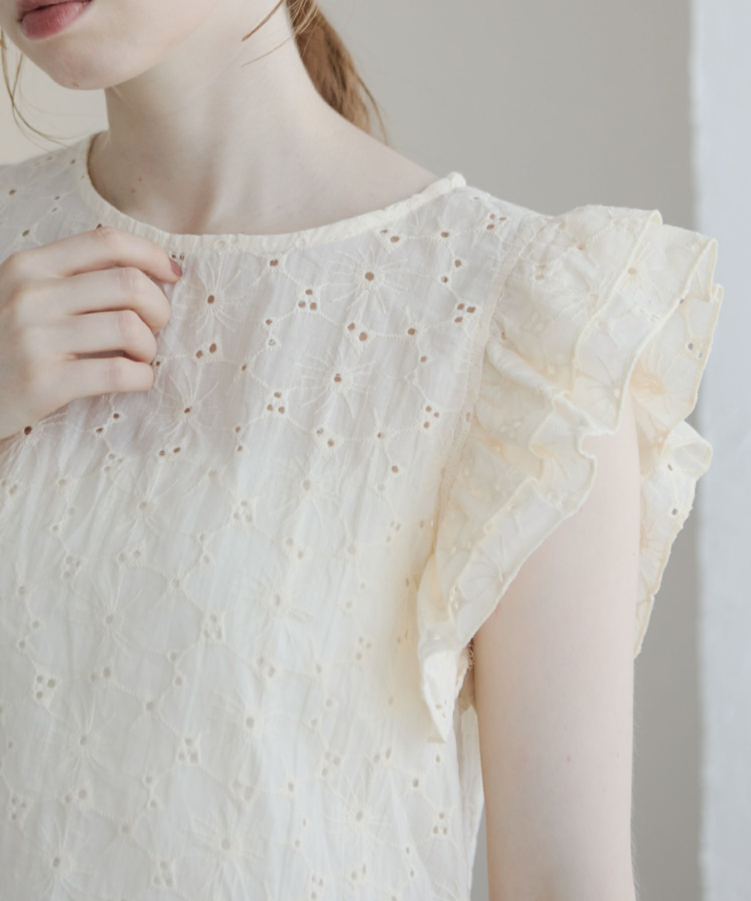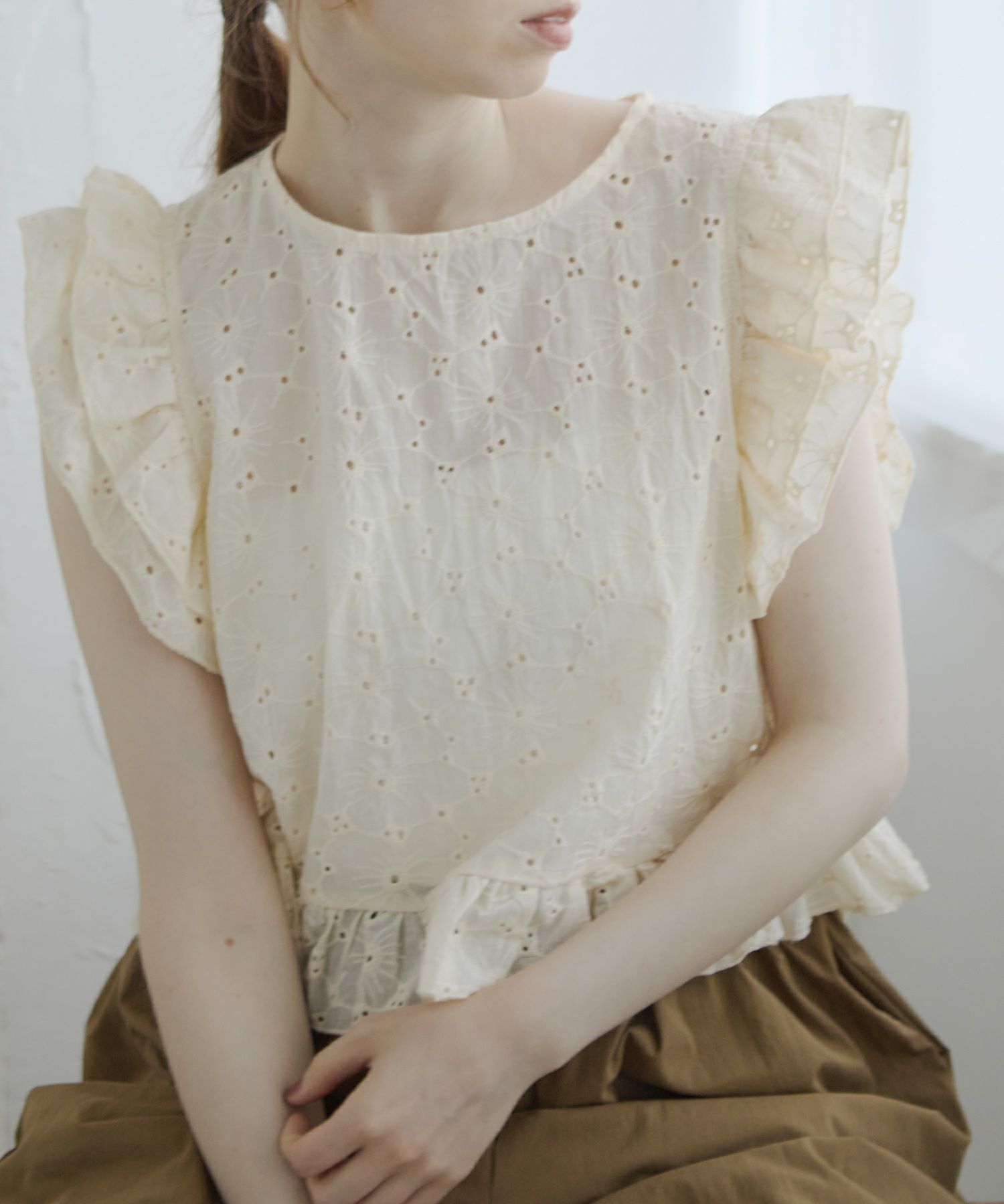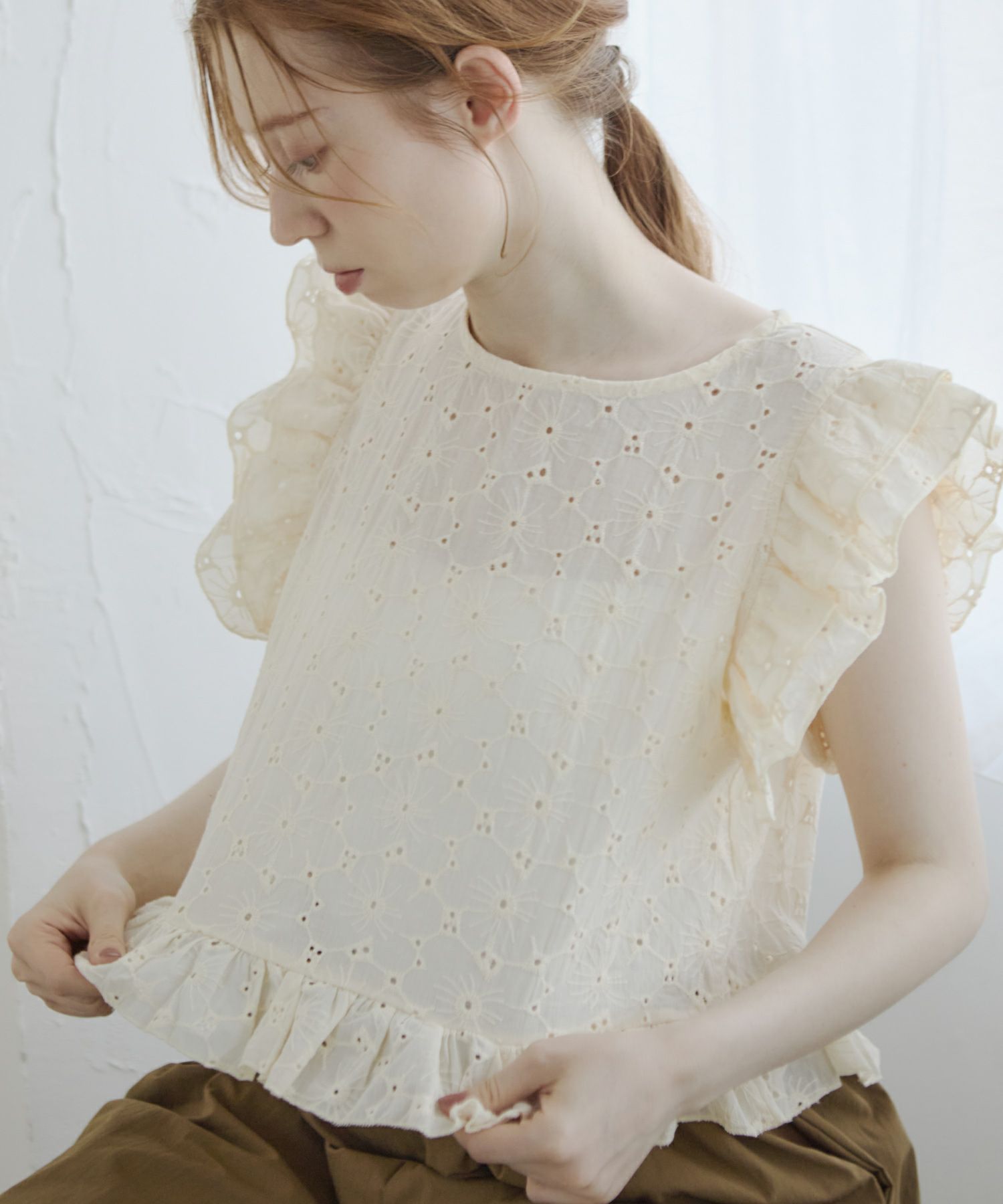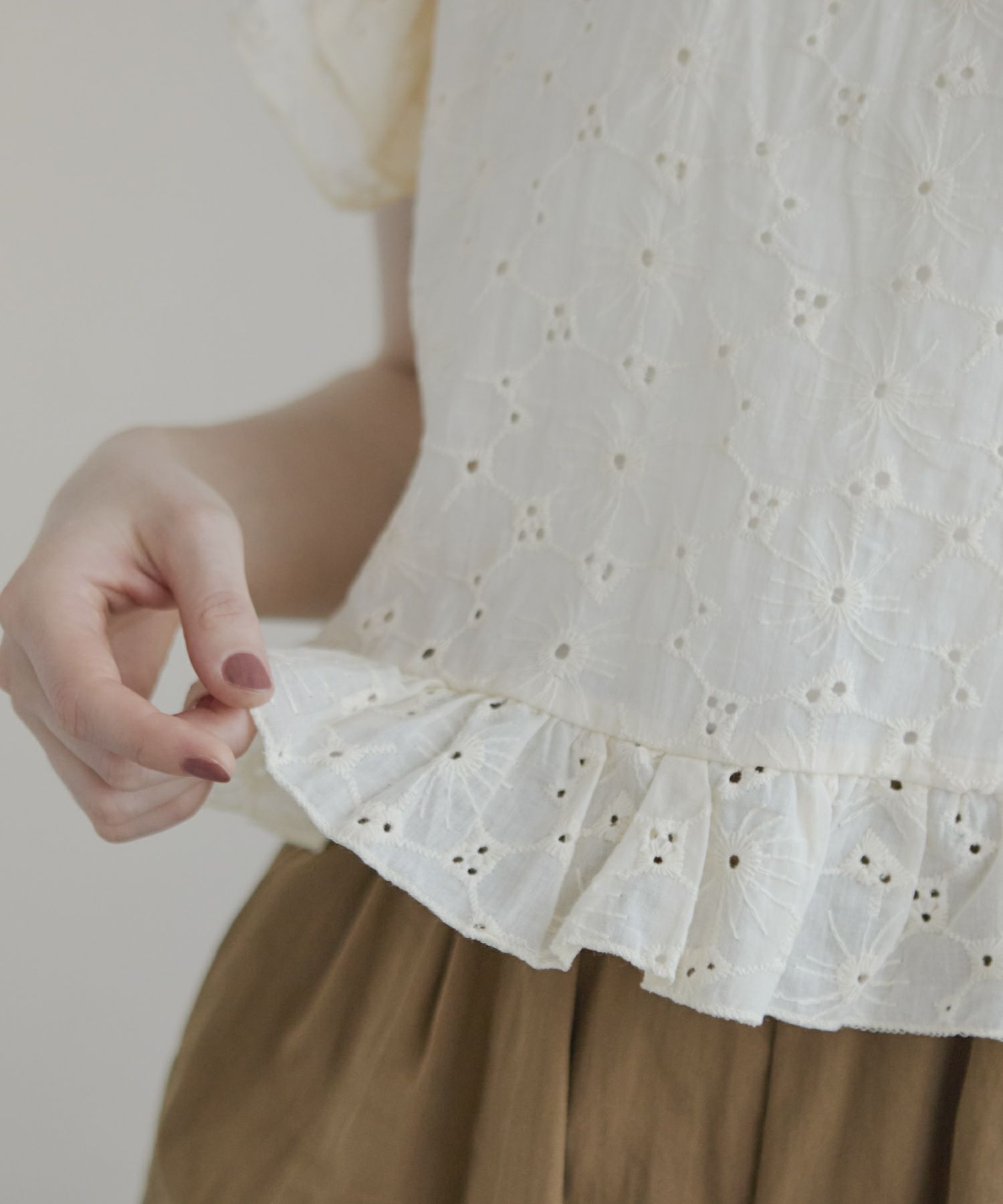 カットワークフリルペプラムブラウス[c1k3706b]