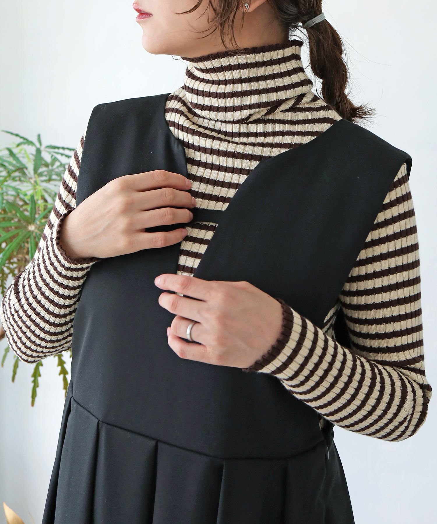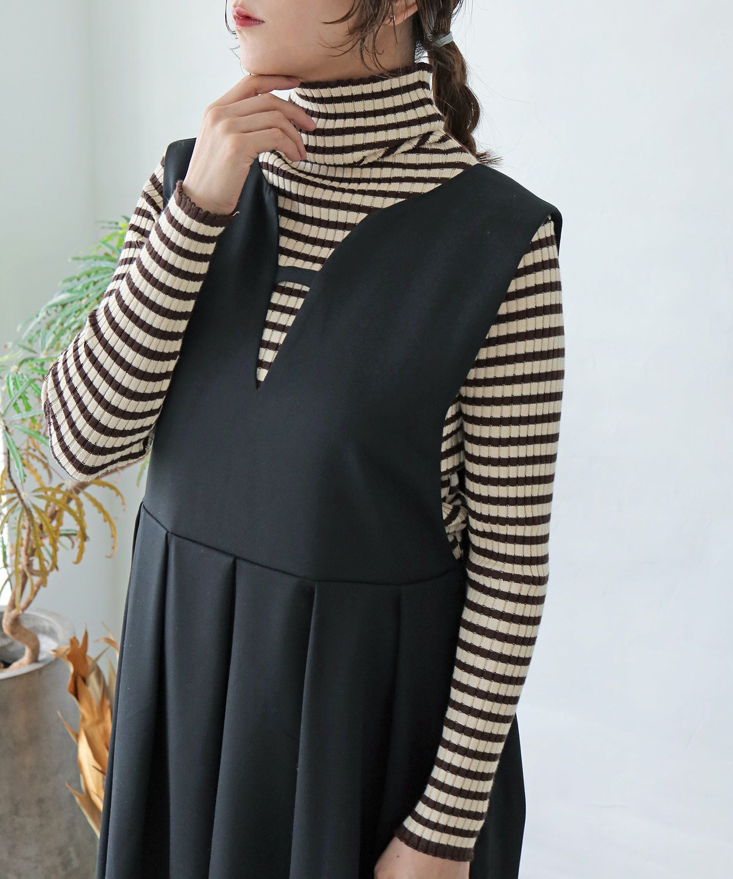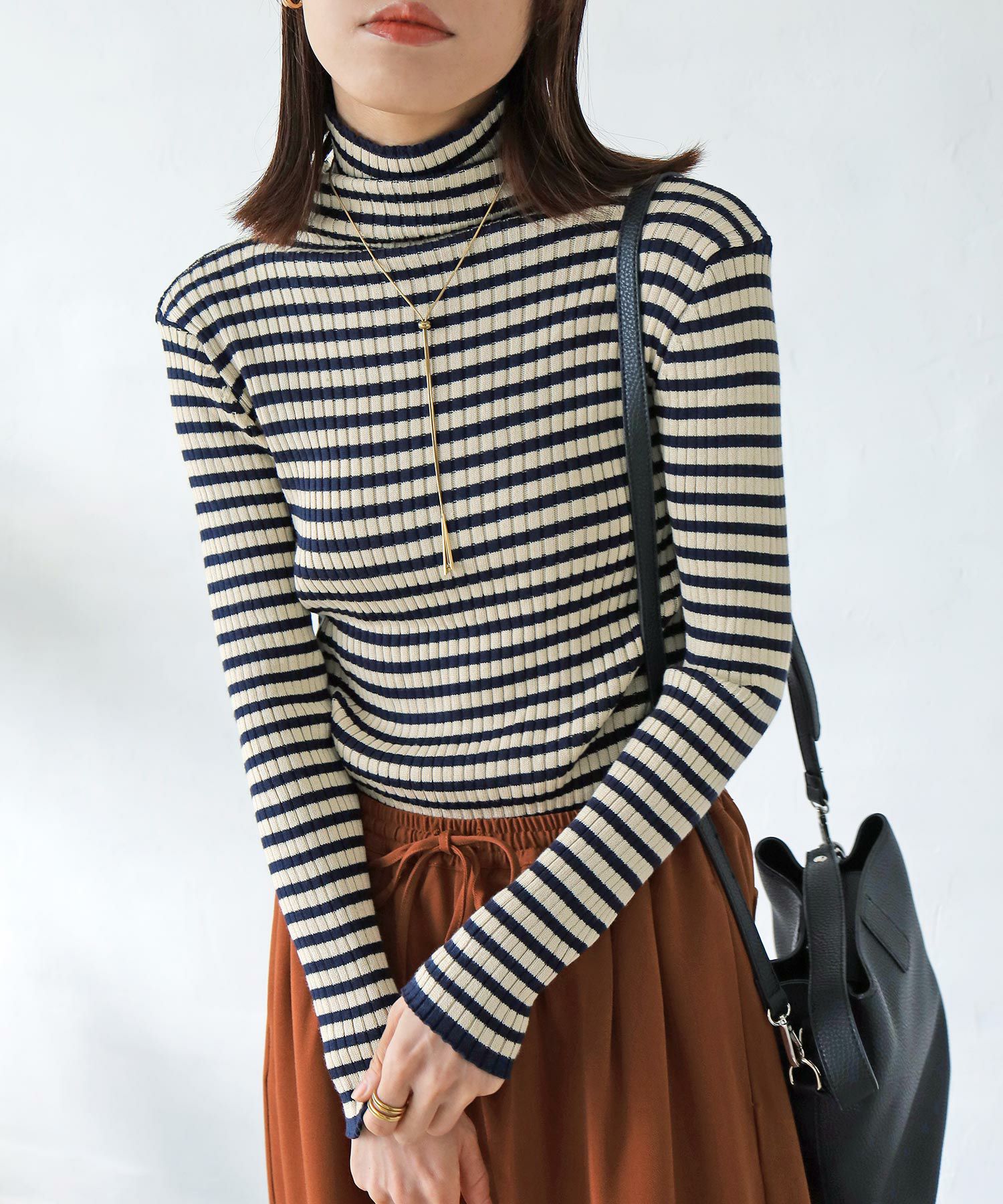 ボーダータートルリブニット[c1R3585]