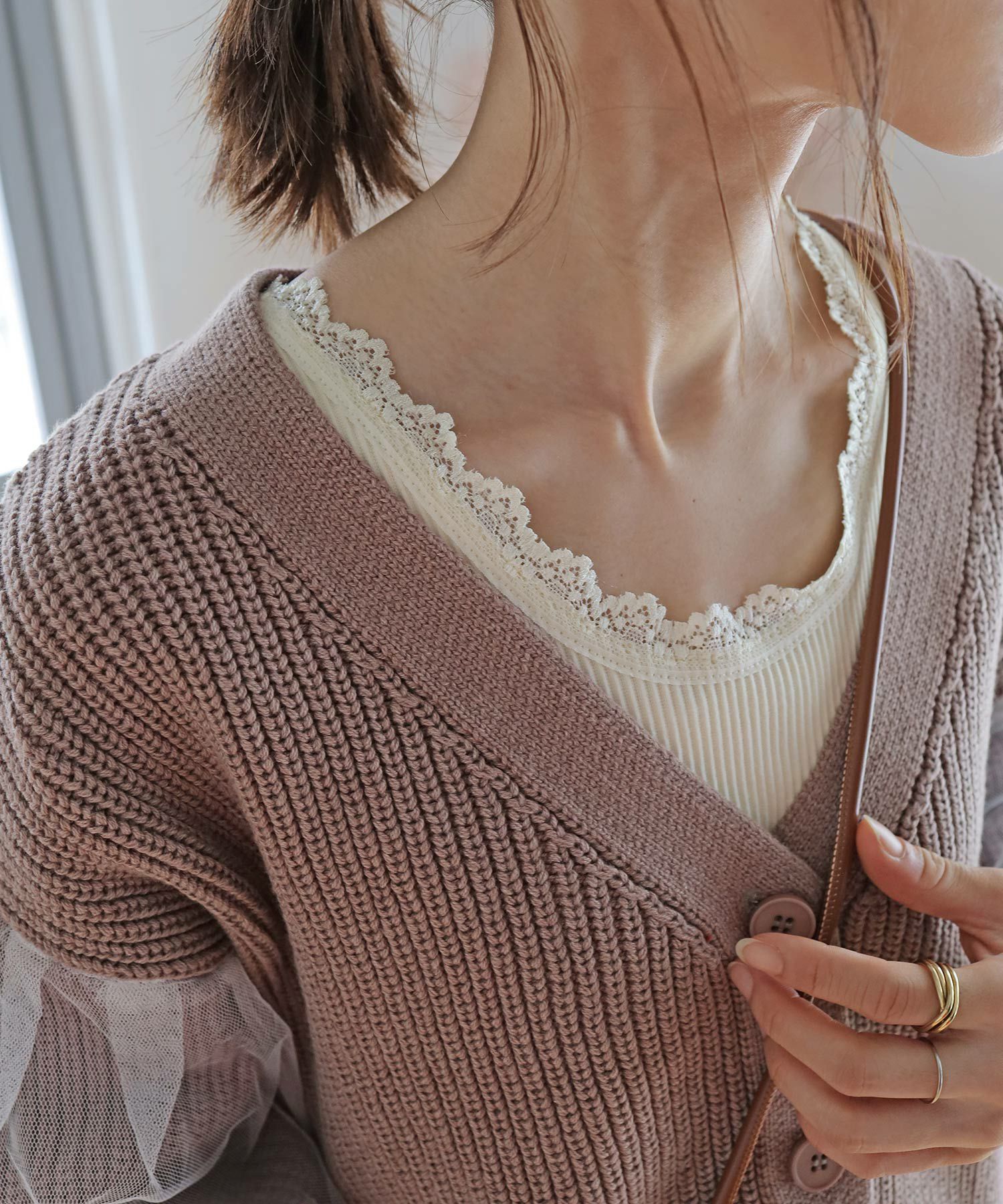 【セットアップ対応可】サイドリボンデニムレースベスト[c1R3423]