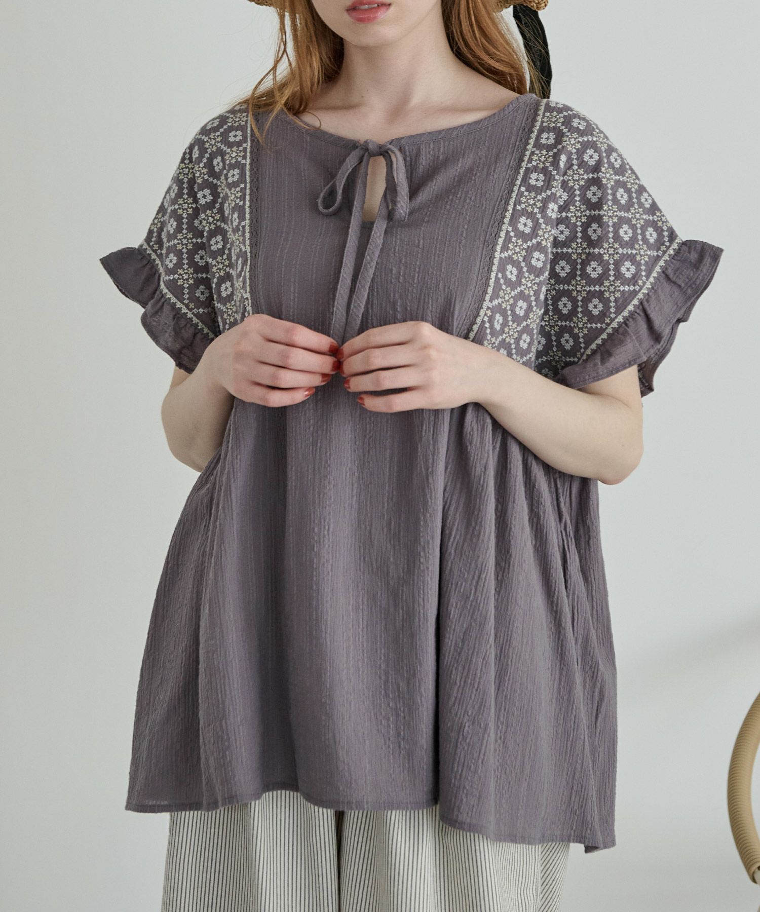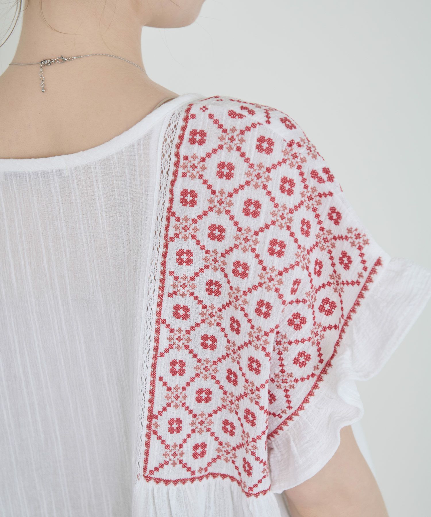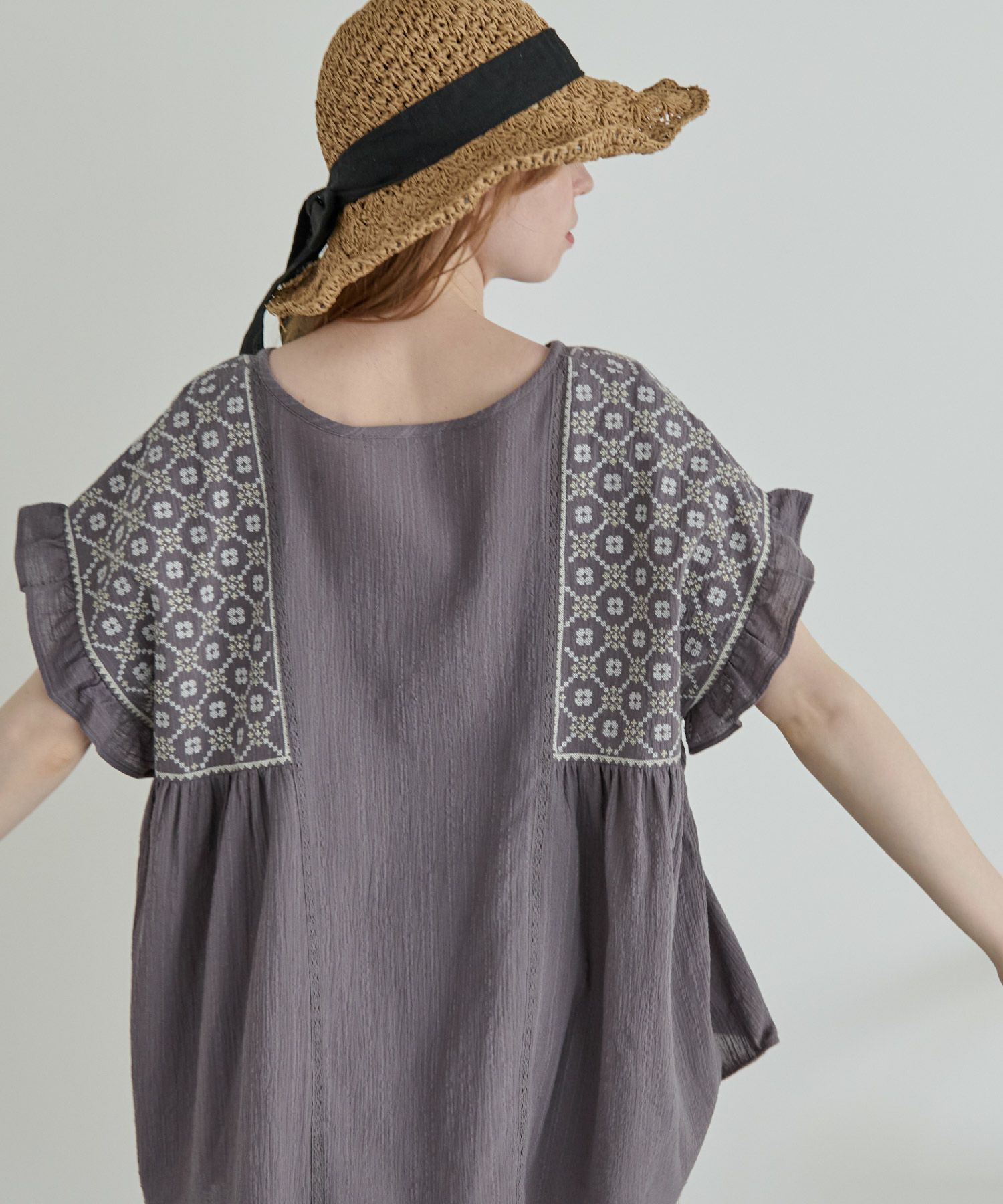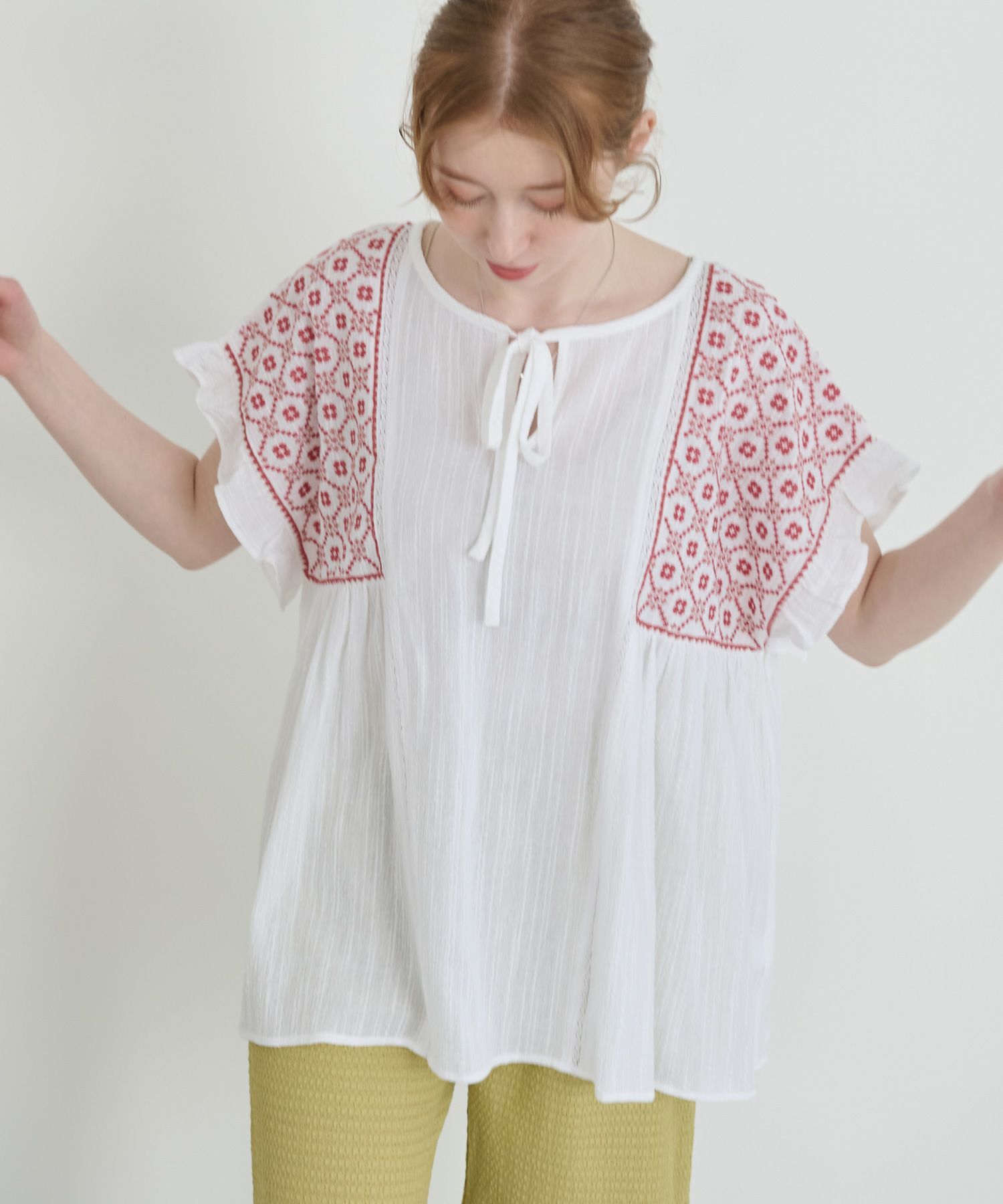 刺繍フリルチュニック[c1R3614]