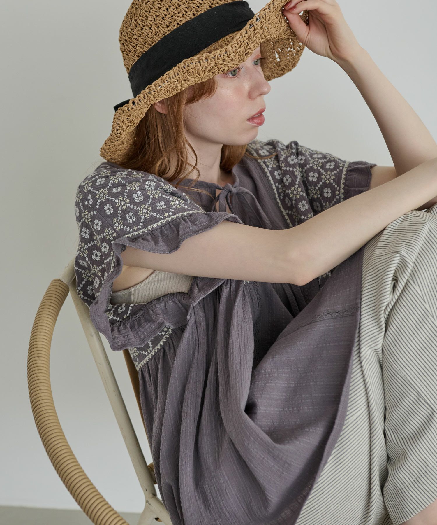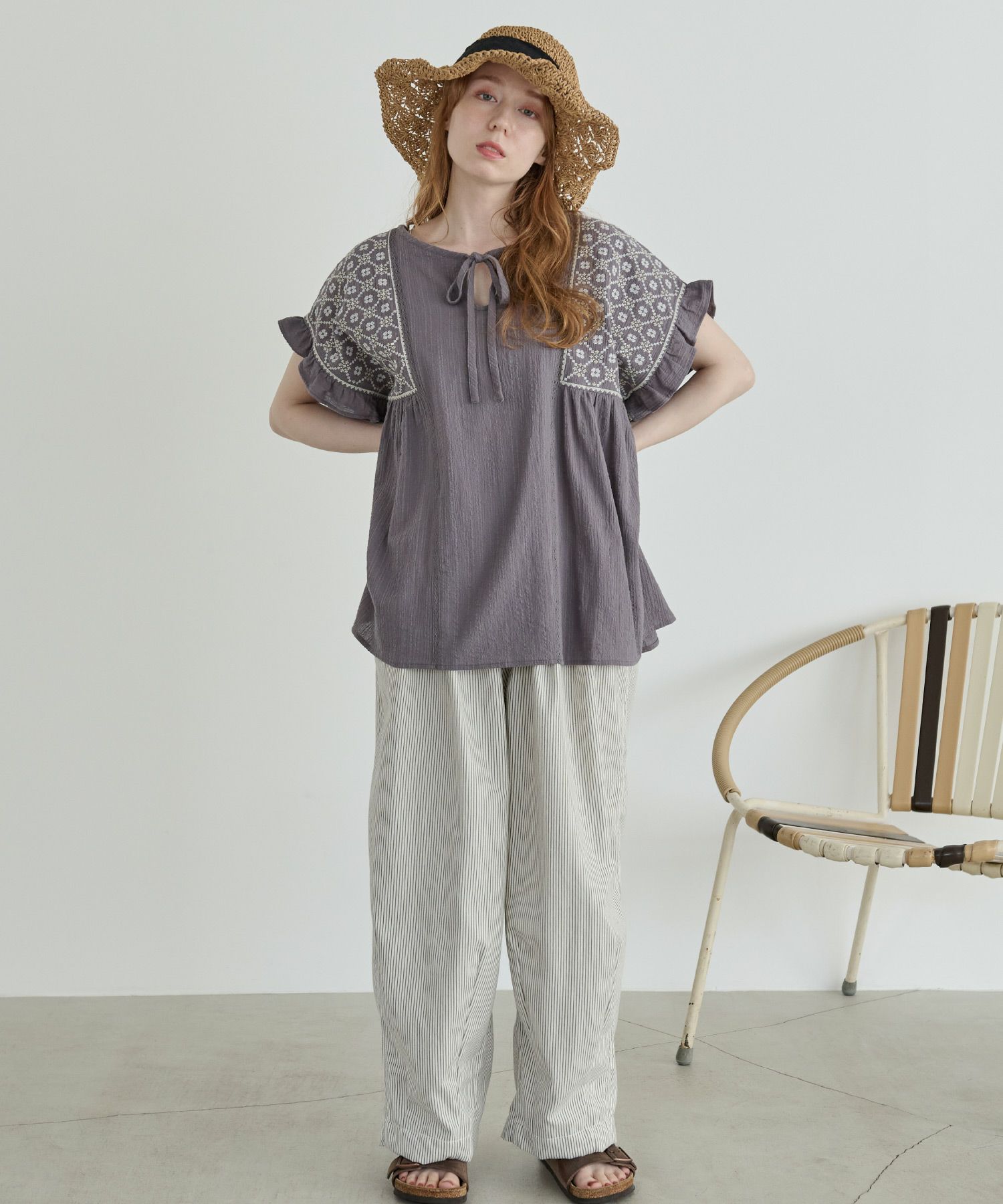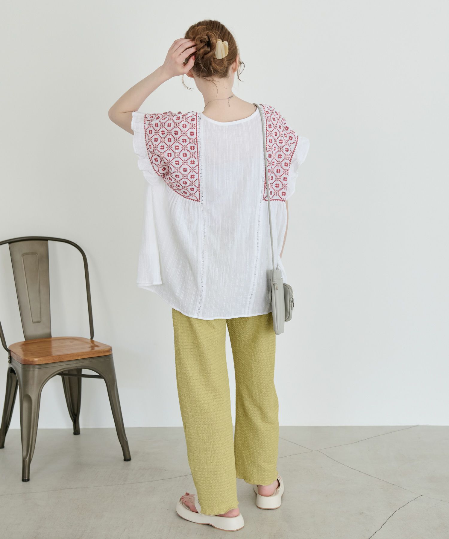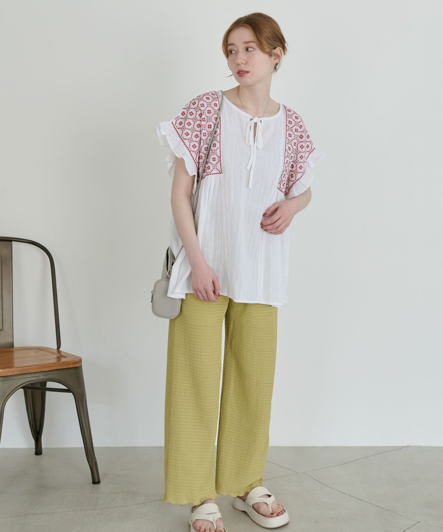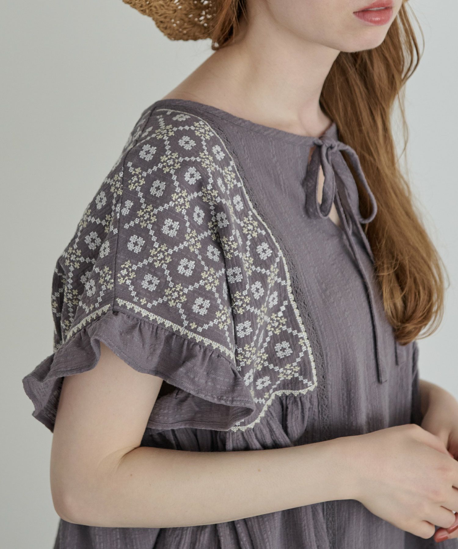 刺繍フリルチュニック[c1R3614]